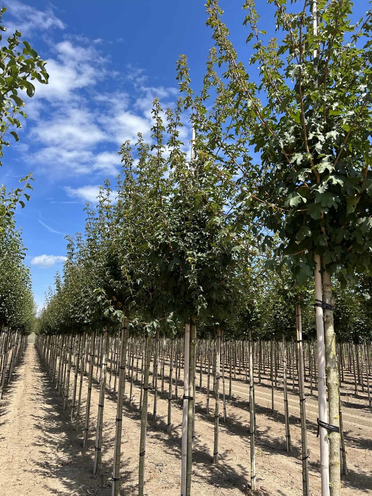 Mit 160 ha Anbauflächen und einem 10 ha großen Feld für unsere Topfpflanzen können wir das ganze Jahr über Bäume liefern. Jedes Jahr lassen wir mehr als 175.000 junge Bäume heranwachsen, bis sie bereit zum Verkauf sind.