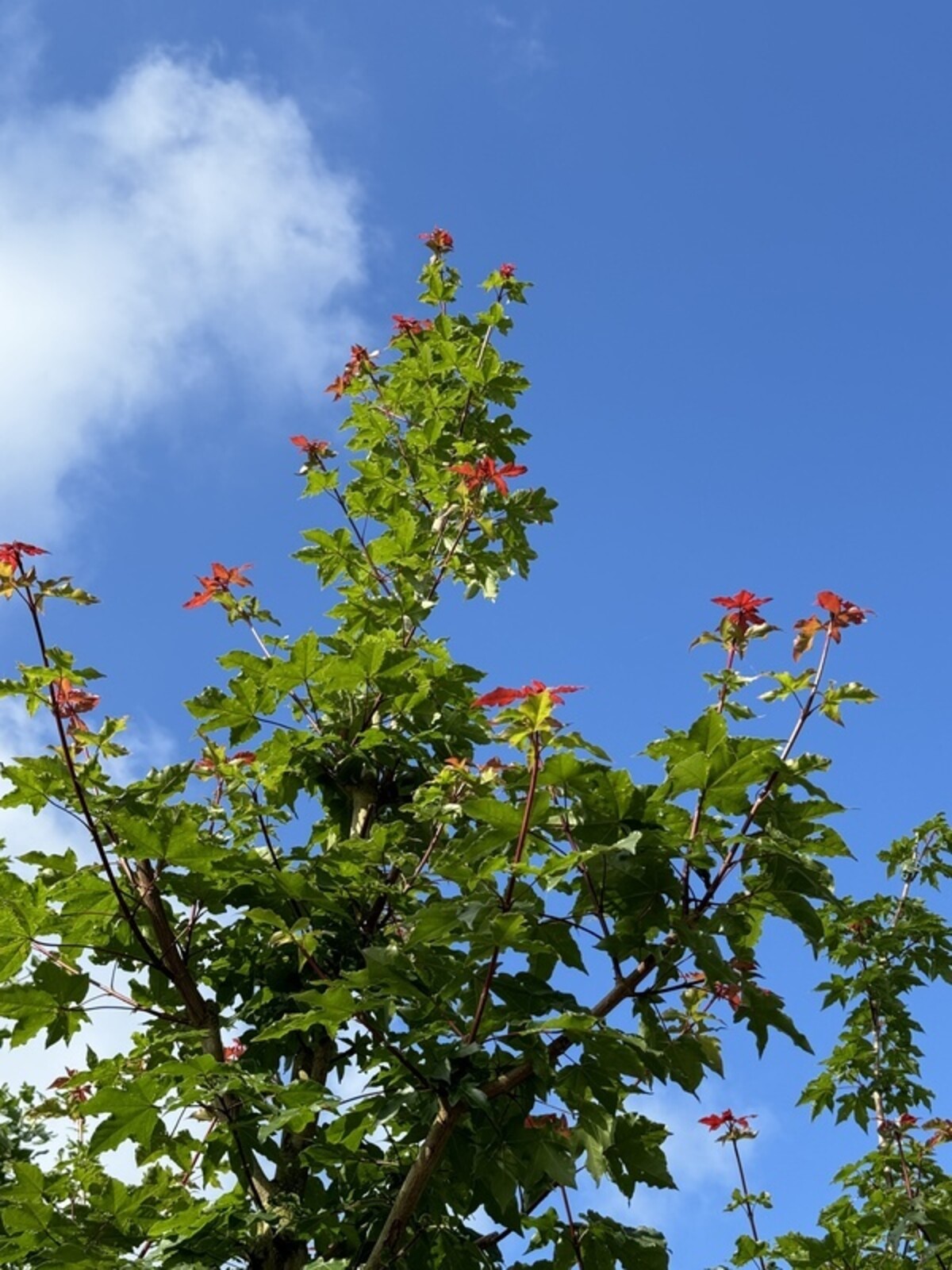 Wie sieht die Jahreszeitenvariation des Zoescheners Ahorn aus?Im Frühling und Sommer zeigt der Zoescheners Ahorn lebendige grüne Blätter. Im Herbst verwandelt sich das Laub in eine spektakuläre Mischung aus Rot, Gelb und Orange. Im Winter zeigt der Baum seine beeindruckende Aststruktur.
