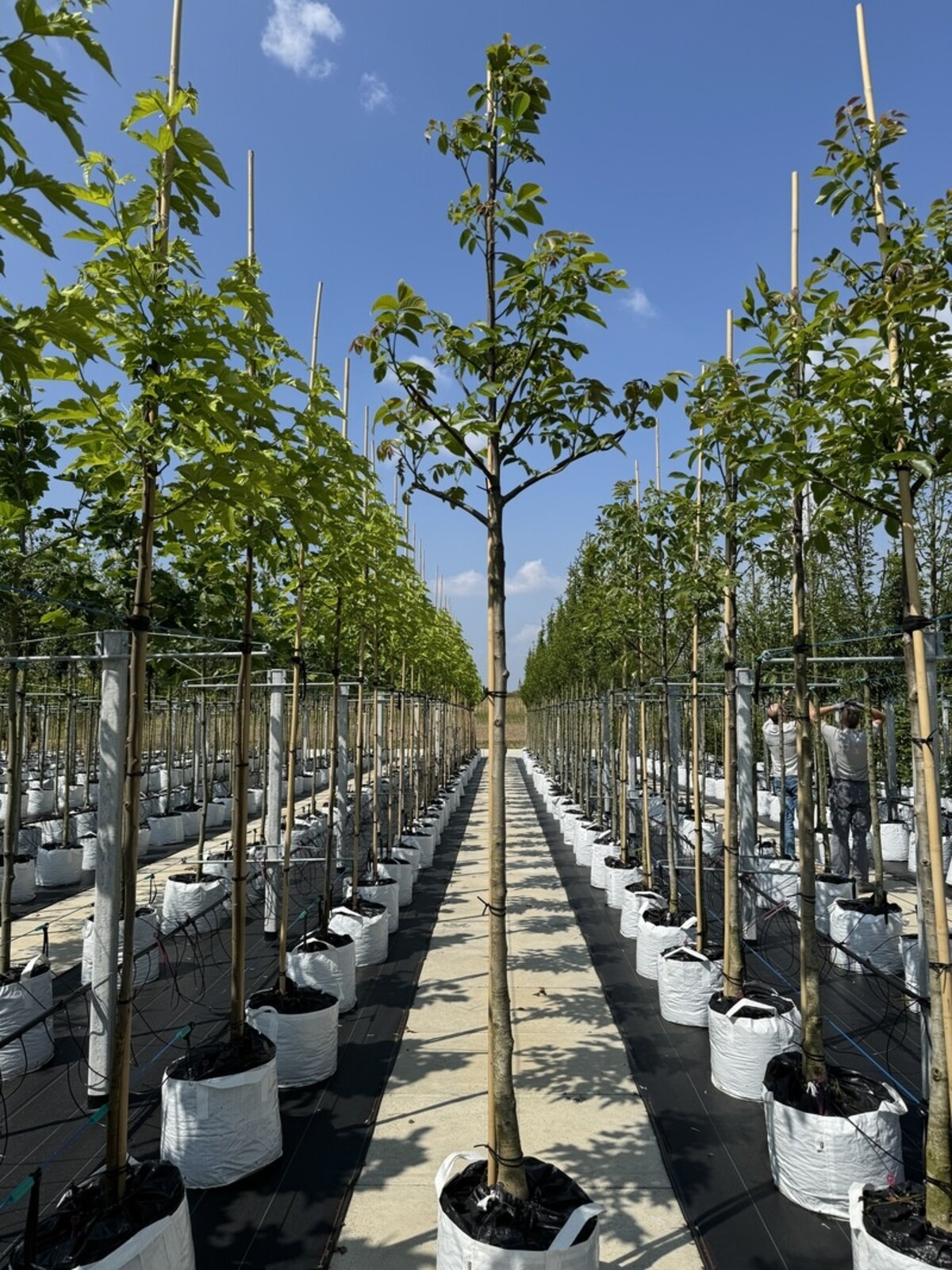 Mit 160 ha Anbauflächen und einem 10 ha großen Feld für unsere Topfpflanzen können wir das ganze Jahr über Bäume liefern. Jedes Jahr lassen wir mehr als 175.000 junge Bäume heranwachsen, bis sie bereit zum Verkauf sind.