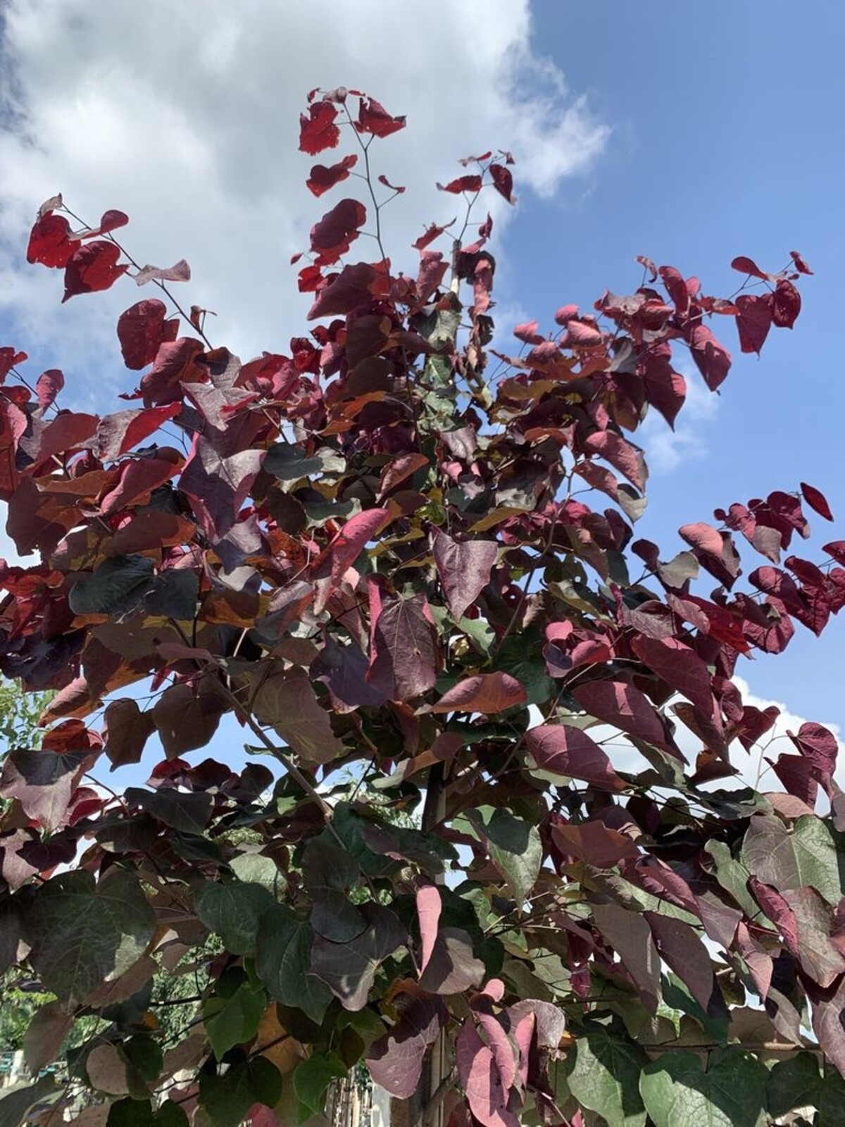Obwohl der 'Forest Pansy' relativ pflegeleicht ist, profitiert er von regelmäßiger Bewässerung, besonders in Trockenperioden. Eine Mulchschicht kann helfen, Feuchtigkeit zu bewahren und den Boden um die Wurzeln herum kühl zu halten. Ein jährlicher Rückschnitt im späten Winter hilft, eine attraktive Form zu erhalten und fördert ein gesundes Wachstum.