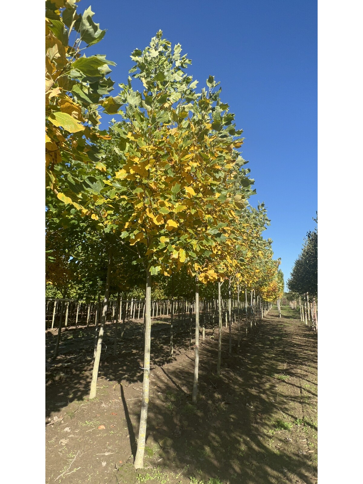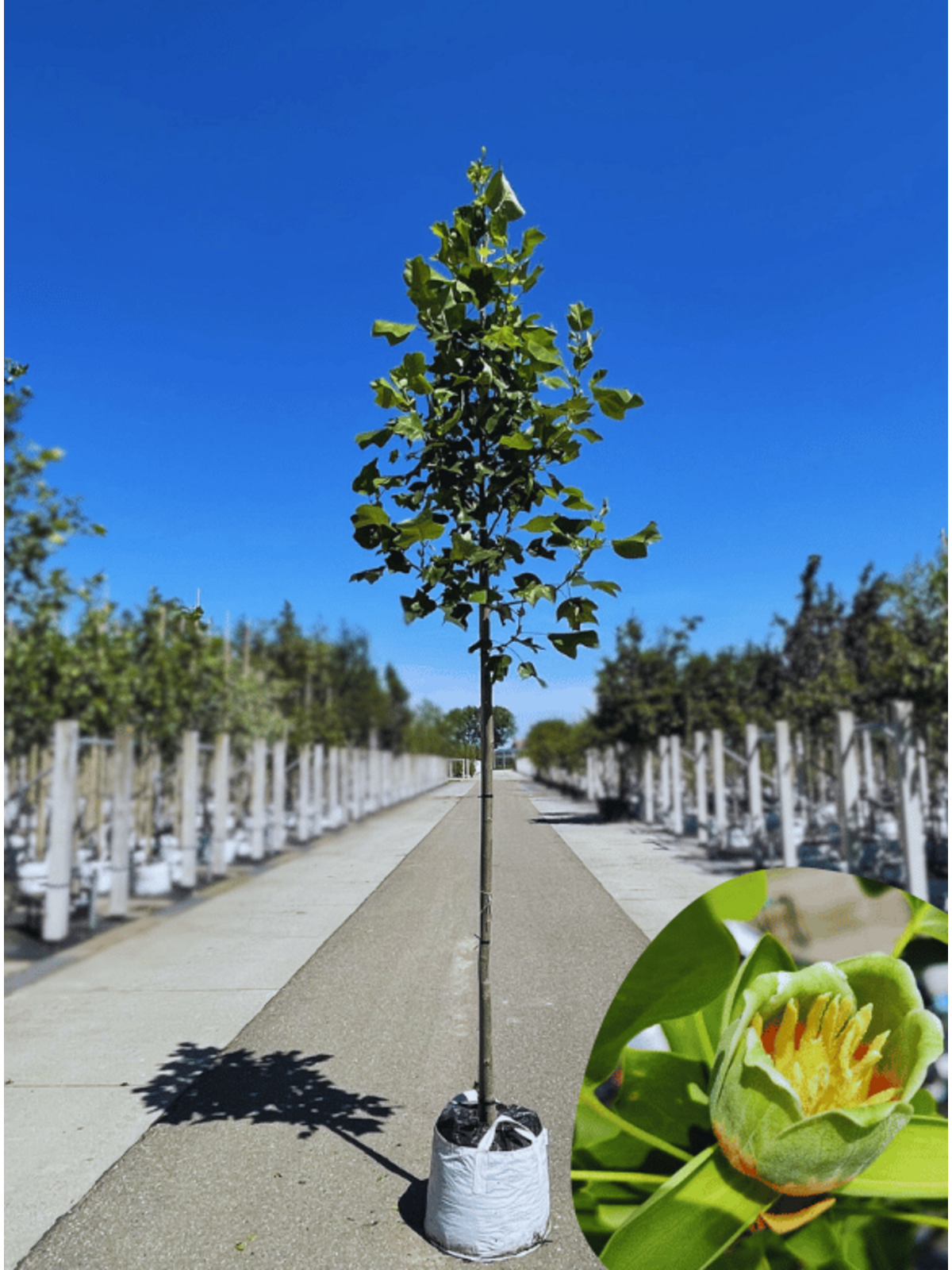Mit seiner majestätischen Krone und den großen, glänzenden Blättern sorgt der Amerikanische Tulpenbaum für ein beeindruckendes Erscheinungsbild. -