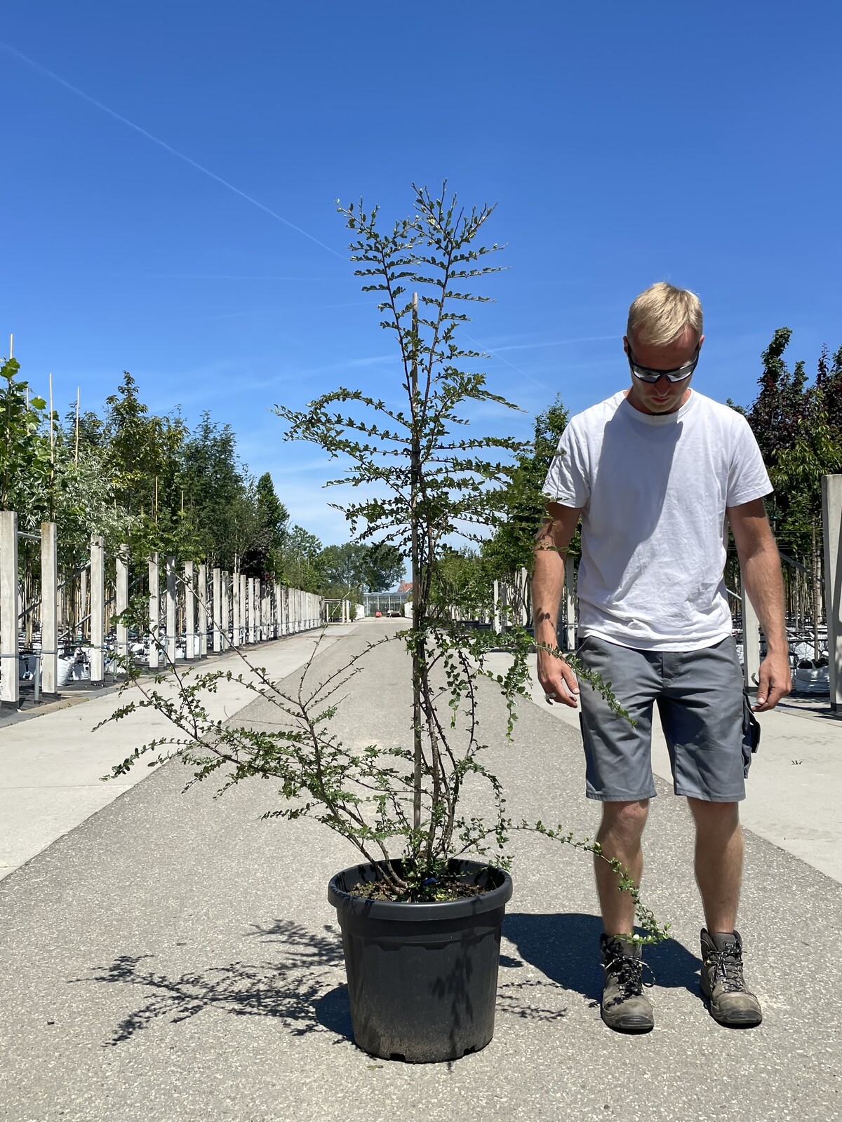 Breit-ovaler, mehrstämmiger Aufbau mit eigenwilliger, dekorativer Verzweigung – spendet freundlichen, leichten Schatten und passt auch in kleinere Gärten. -