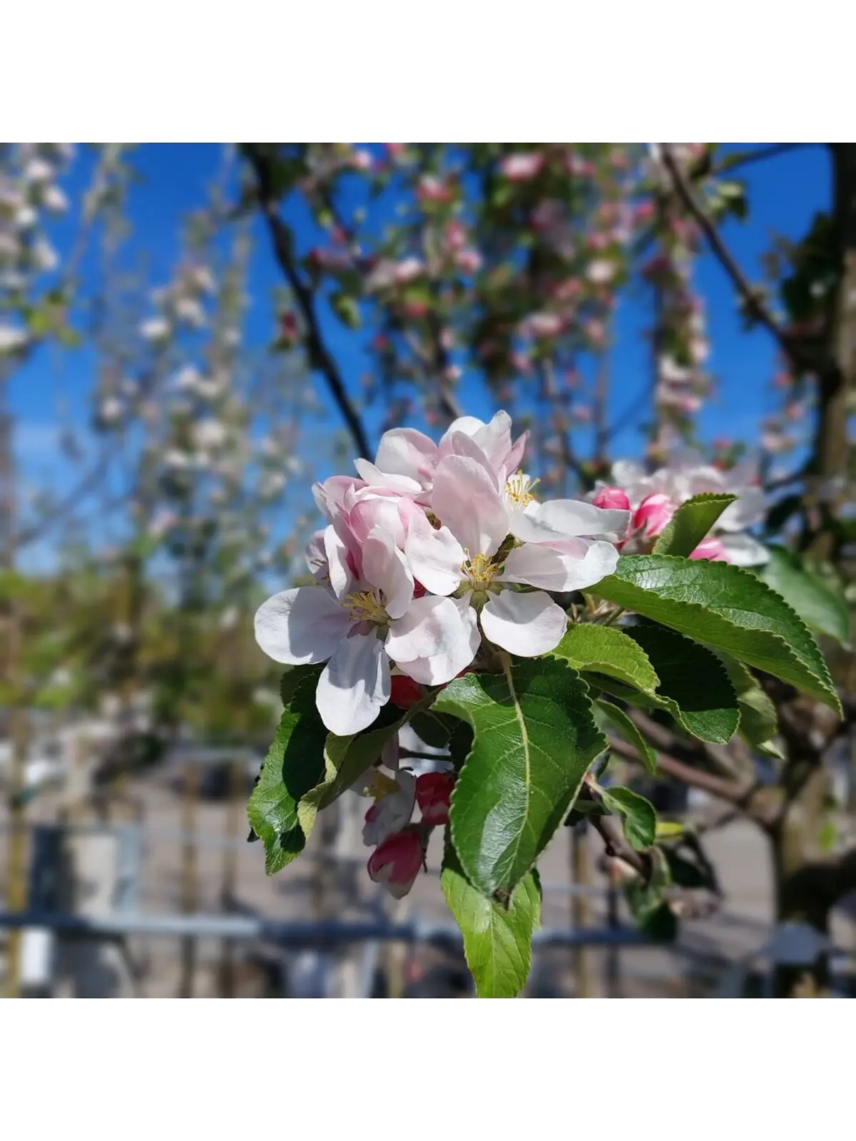 Dieser Apfelbaum passt sich gut an verschiedene Bodenarten an und benötigt nur minimale Pflege. Ein regelmäßiger Schnitt fördert die Gesundheit des Baumes und erhöht den Ertrag, während das kompakte Wachstum des Spalierbaums ihn ideal für kleinere Gärten macht.