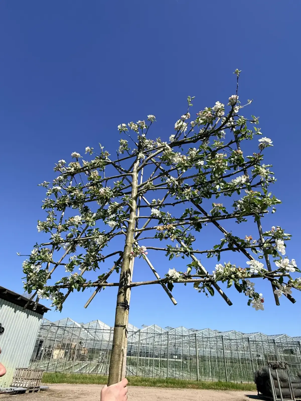 Wie groß wird der Apfel Spalierbaum Jonagold?Als Spalierbaum behält der Jonagold eine kompakte Größe. Die exakte Höhe und Breite hängen von der Struktur des Spaliers und der Pflege ab. Ein regelmäßiger Schnitt hilft, die gewünschte Form zu erhalten.