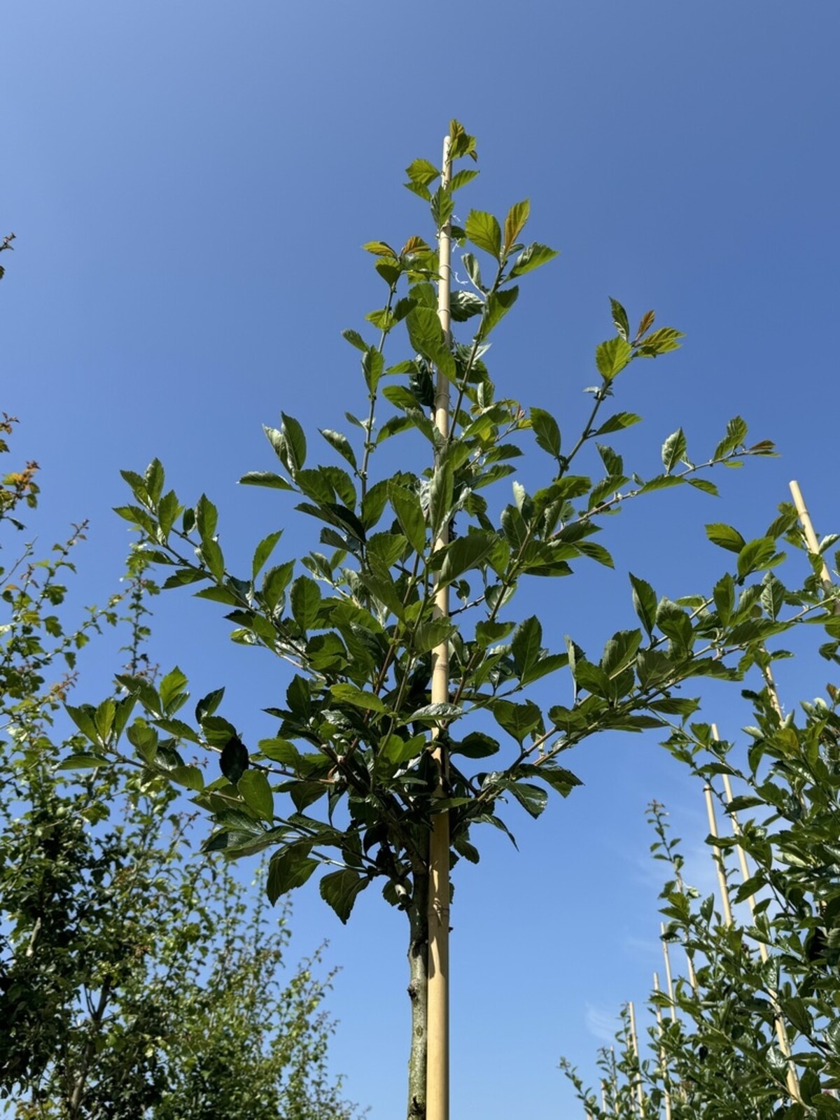Dieser Baum bleibt relativ kompakt und erreicht eine Höhe von etwa 6 bis 8 Metern. Ein Pflanzabstand von mindestens 4 Metern zu anderen Bäumen oder Gebäuden ist ideal.