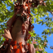 - Ein Geheimtipp ist der Weiße Maulbeerbaum, der mit seinen bis zu 30cm großen Blättern ein wunderbarer Schattenspender ist und uns mit seinen süßlichen Früchten einen ungewohnten Gaumengenuss beschert.