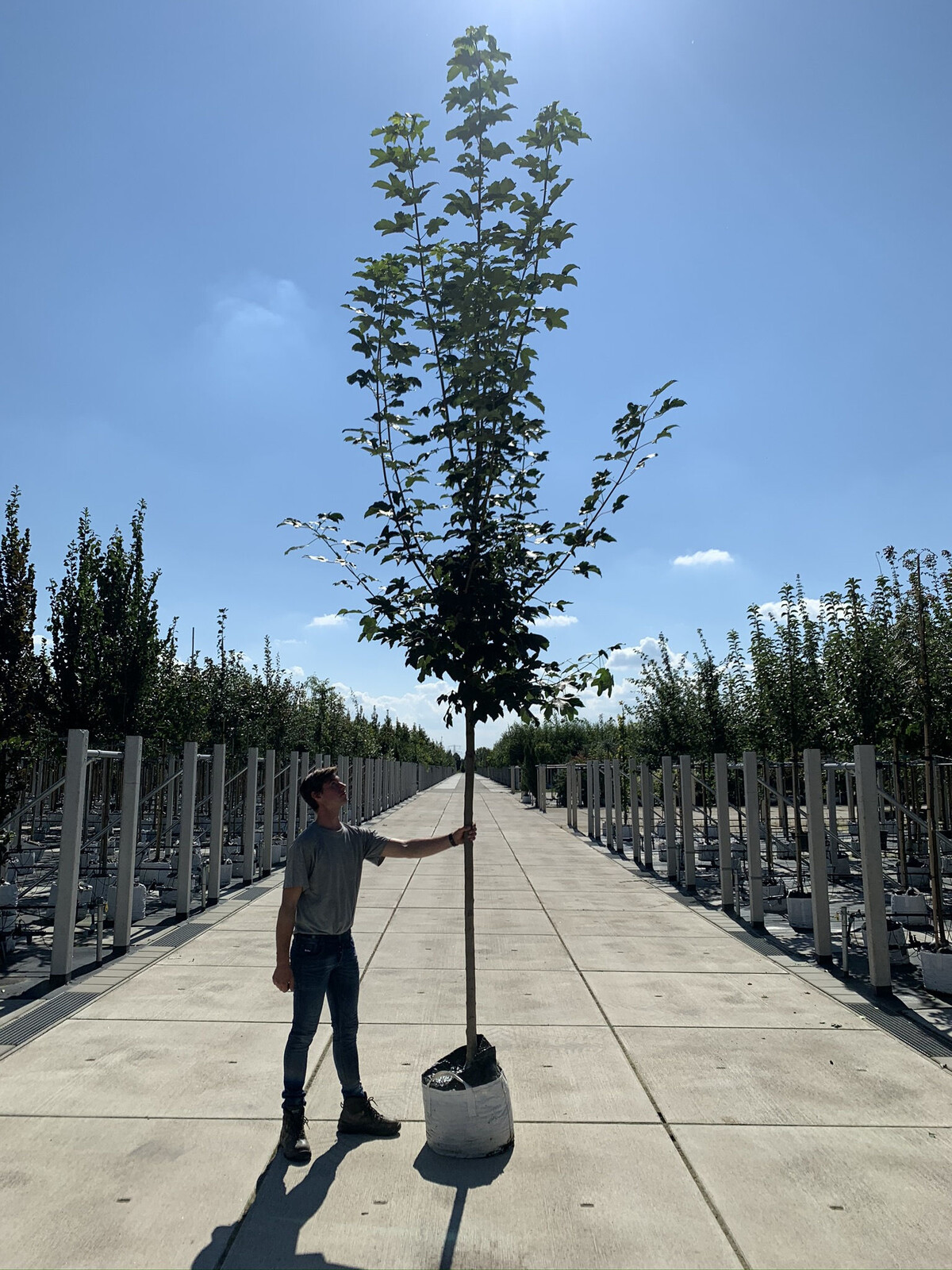 Mit 160 ha Anbauflächen und einem 10 ha großen Feld für unsere Topfpflanzen können wir das ganze Jahr über Bäume liefern. Jedes Jahr lassen wir mehr als 175.000 junge Bäume heranwachsen, bis sie bereit zum Verkauf sind.