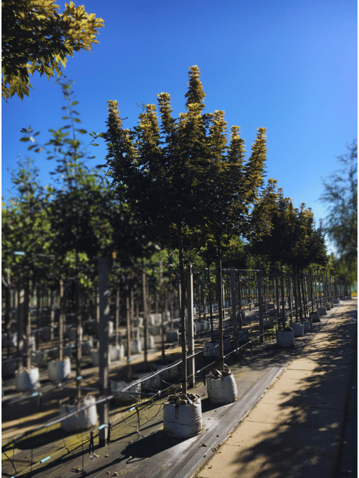 Mit 160 ha Anbauflächen und einem 10 ha großen Feld für unsere Topfpflanzen können wir das ganze Jahr über Bäume liefern. Jedes Jahr lassen wir mehr als 175.000 junge Bäume heranwachsen, bis sie bereit zum Verkauf sind.