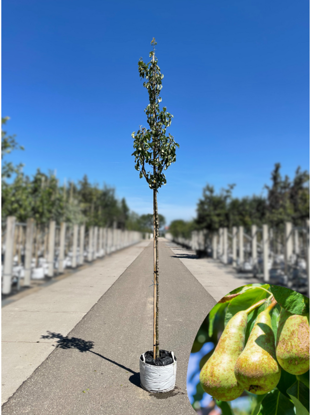 Der Birnenbaum 'Conference' ist als Hochstamm erhältlich, der durch Veredelung gezogen wird. Diese Anbaumethode führt zu einer schönen, aufrechten Wuchsform des Baums und erleichtert die Ernte der Früchte. Der Hochstamm-Birnenbaum 'Conference' ist eine tolle Wahl für jeden Garten oder Obstgarten.