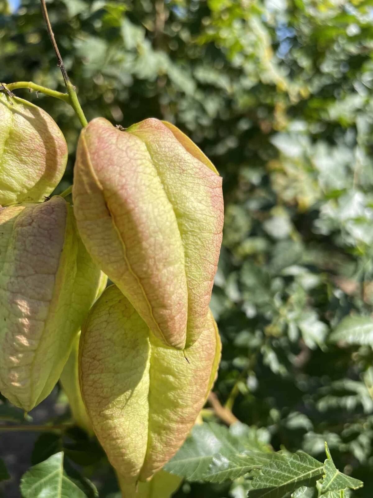 Nach der Blüte bilden sich die namensgebenden, blasenartigen Samenkapseln; das Laub färbt sich im Herbst gelb bis orange. -