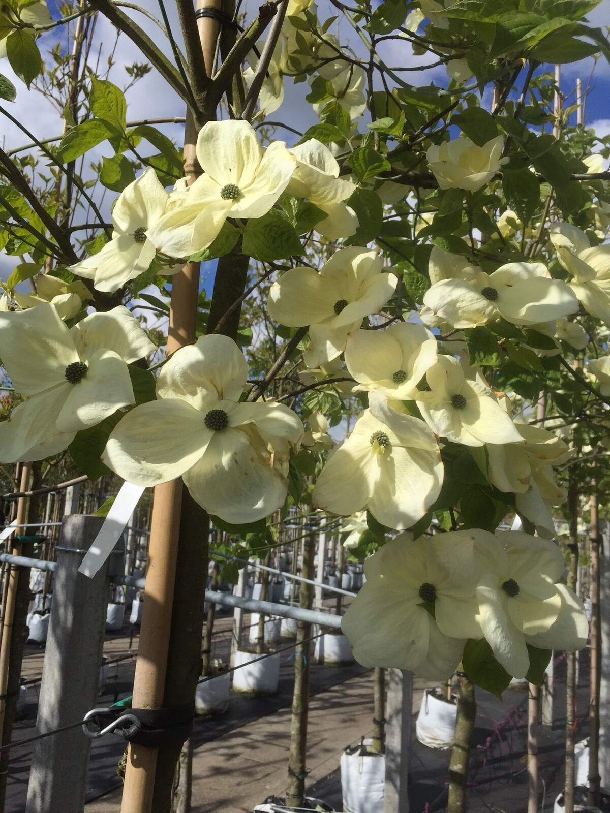 Cornus 'Eddie's White Wonder' ist ein vielseitiger Baum, der sich in verschiedenen Gartenlandschaften gut macht. Er kann als Solitärbaum gepflanzt werden, um ein starkes visuelles Element zu schaffen, oder in Gruppen, um einen blühenden Akzent zu setzen. Er ist ideal für Gärten, in denen das ganze Jahr über Farbe und Struktur gewünscht sind. Seine wunderschöne Blüte macht ihn auch in formalen Gärten oder als Teil einer gemischten Rabatte sehr geeignet.