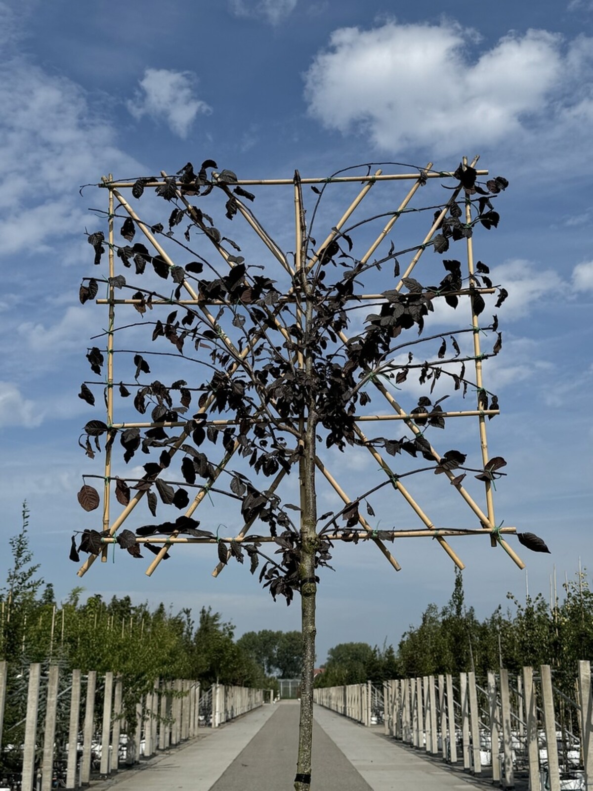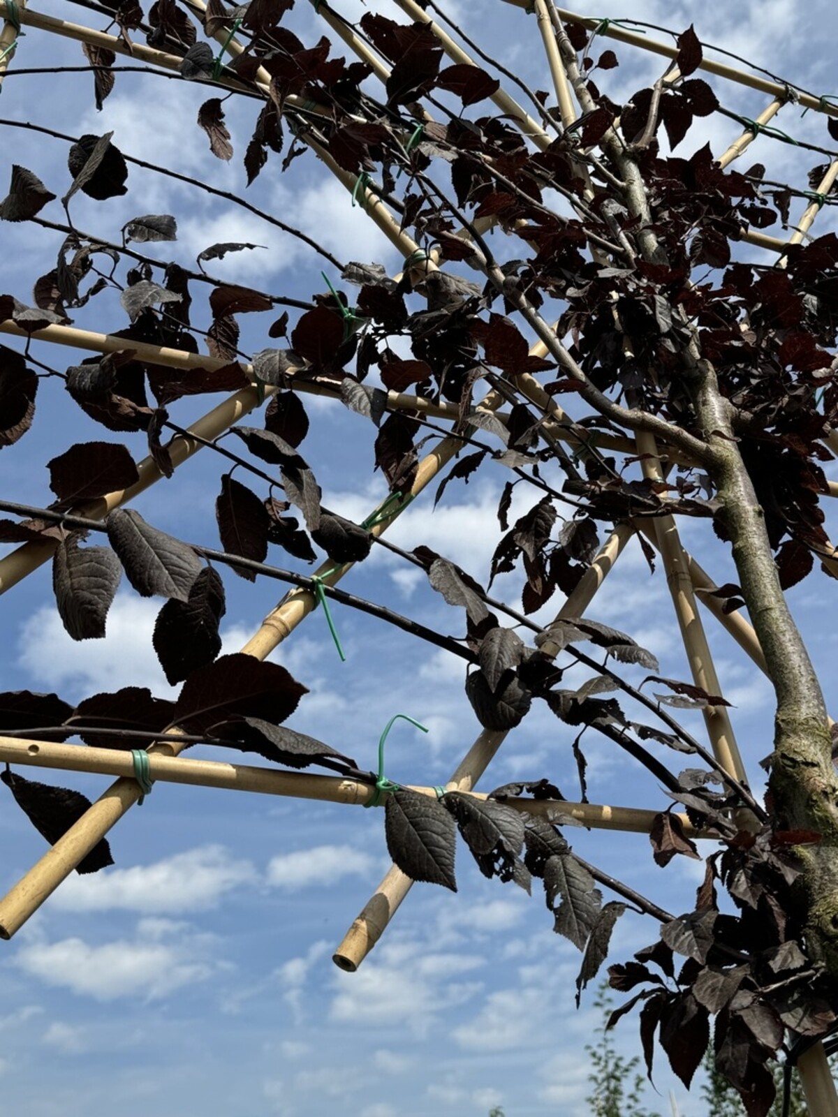 Kreative Gestaltung mit Prunus cerasifera 'Nigra' im Spalier