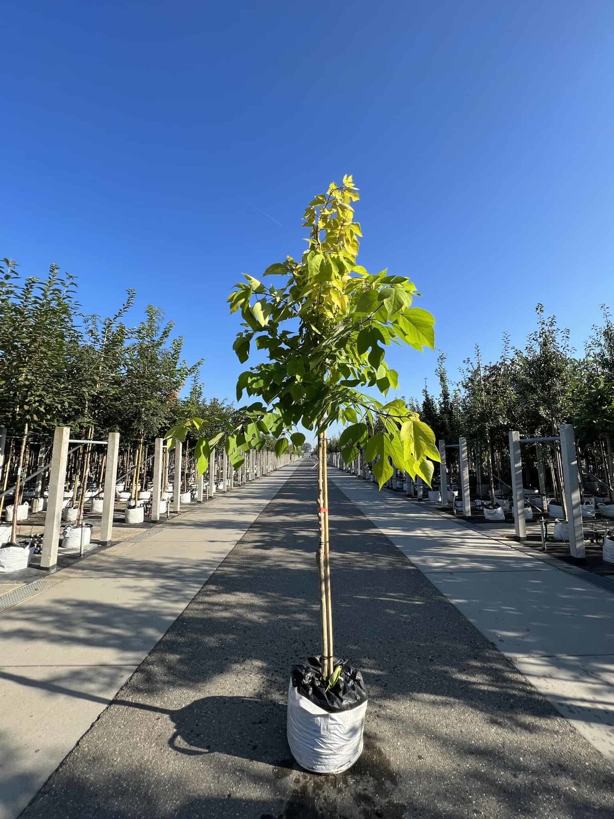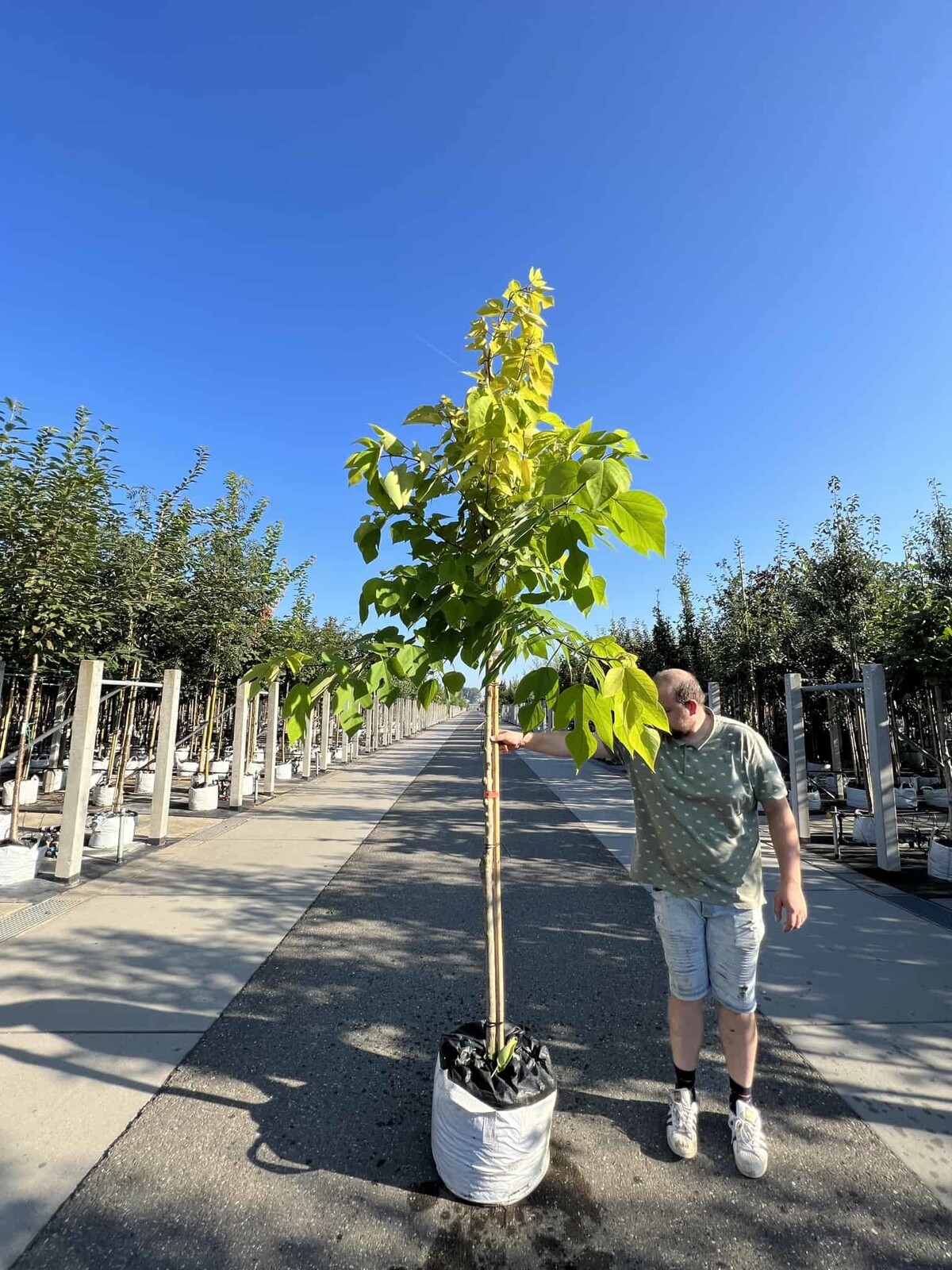 Wie pflege ich meinen Papiermaulbeerbaum Golden Shadow?Der Papiermaulbeerbaum Golden Shadow ist relativ pflegeleicht. In den ersten Jahren sollte er regelmäßig gegossen werden, um ein gesundes Wachstum zu fördern. Einmal etabliert, ist der Baum trockenheitstolerant. Ein jährlicher Schnitt ist nicht notwendig, kann aber helfen, die gewünschte Form zu bewahren und die Luftzirkulation zu verbessern. Im Frühjahr fördert eine Düngung mit einem ausgewogenen Dünger das Wachstum.