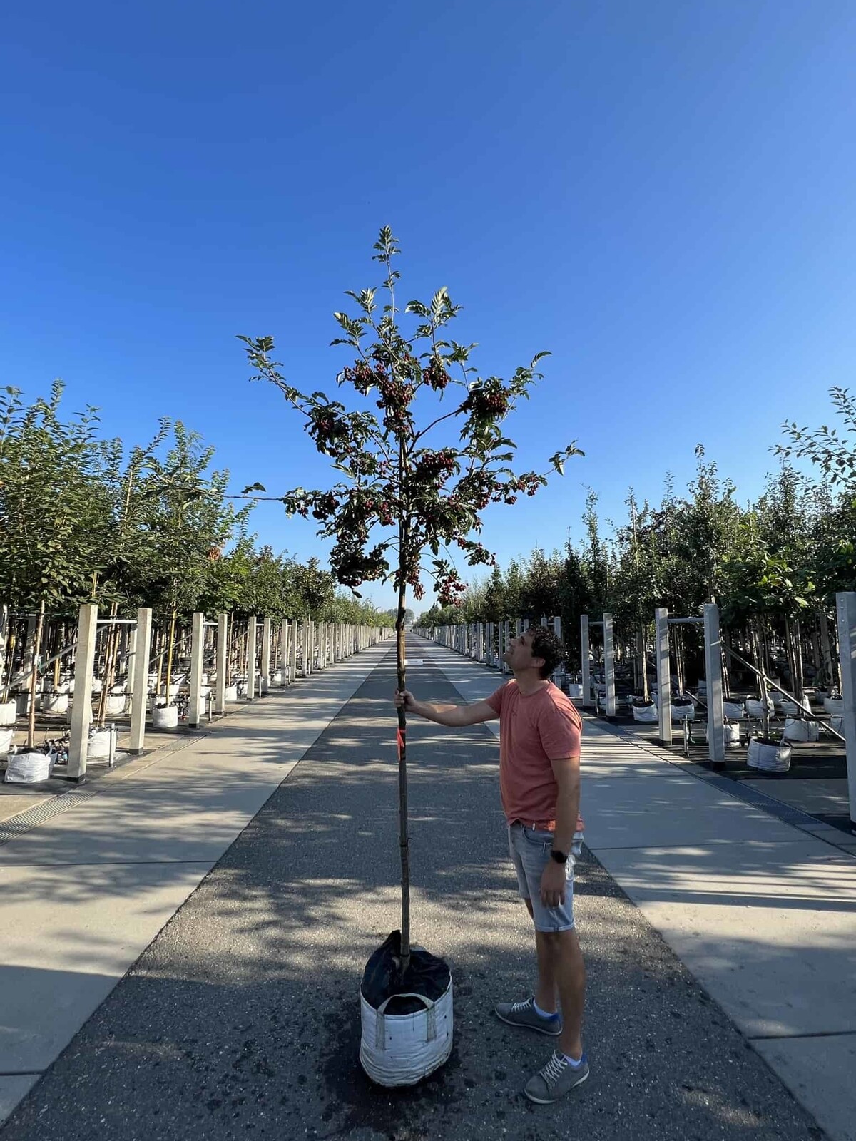 Auf 160 Hektar Anbaufläche kultivieren wir jährlich 175.000 Bäume im Freiland sowie 50.000 Bäume im Topf in rund 750 verschiedenen Sorten. Dank unserer Topfbäume ist eine ganzjährige Lieferung möglich, auch in den Sommermonaten.