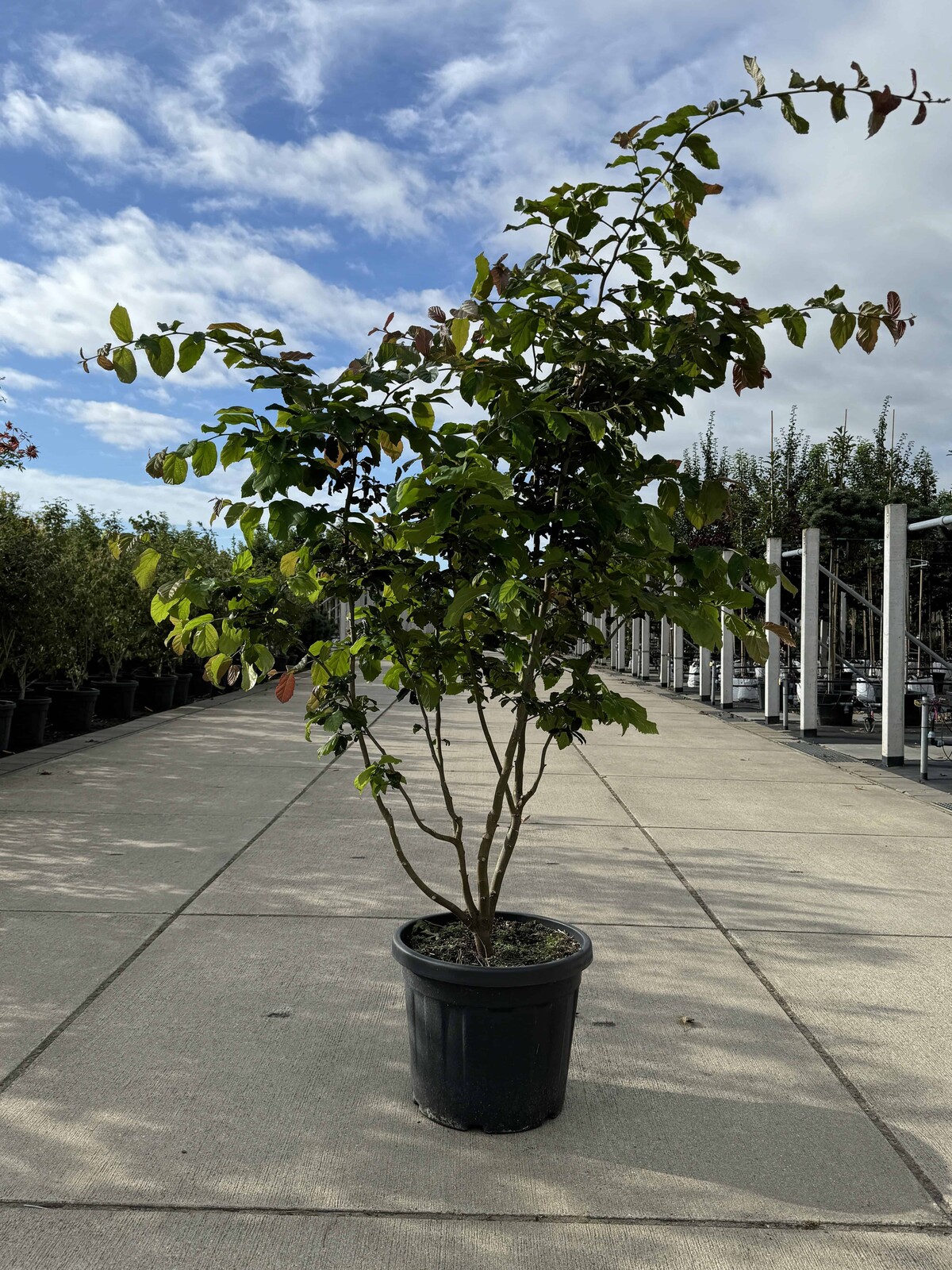 Mit seiner außergewöhnlichen Herbstfärbung, der charaktervollen Rinde und der eleganten mehrstamm-Silhouette ist der Eisenholzbaum mehrstämmig eine ideale Wahl für Vorgärten, Parkanlagen und als Solitär.