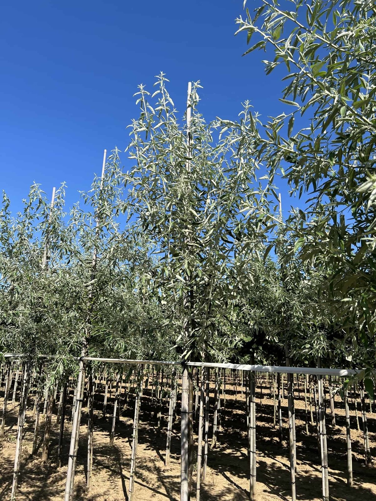 Der Name bezieht sich auf die schmalen, silbergrauen Blätter, die dem Baum eine auffällige, mediterrane Ausstrahlung verleihen.