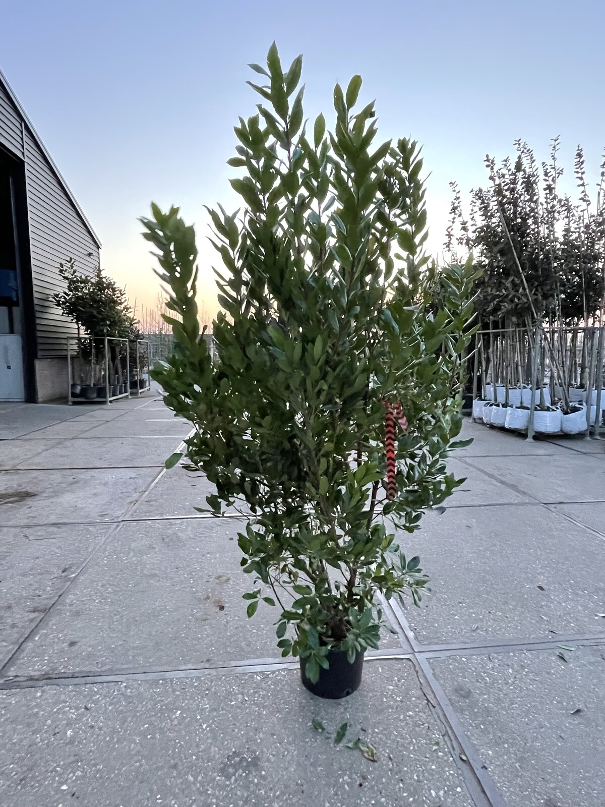 Das Laub bleibt ganzjährig erhalten und bringt südliches Ambiente in den Garten – ideal als solitärer Strukturgeber. -