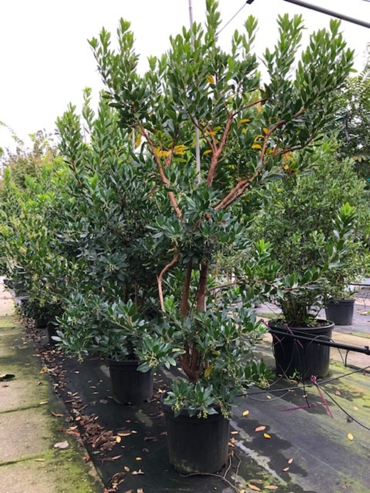 Welche Standortbedingungen bevorzugt der Erdbeerbaum?Der mehrstämmige Erdbeerbaum bevorzugt einen sonnigen bis halbschattigen Standort mit gut durchlässigem Boden. Er ist anpassungsfähig und verträgt auch trockene Bedingungen.