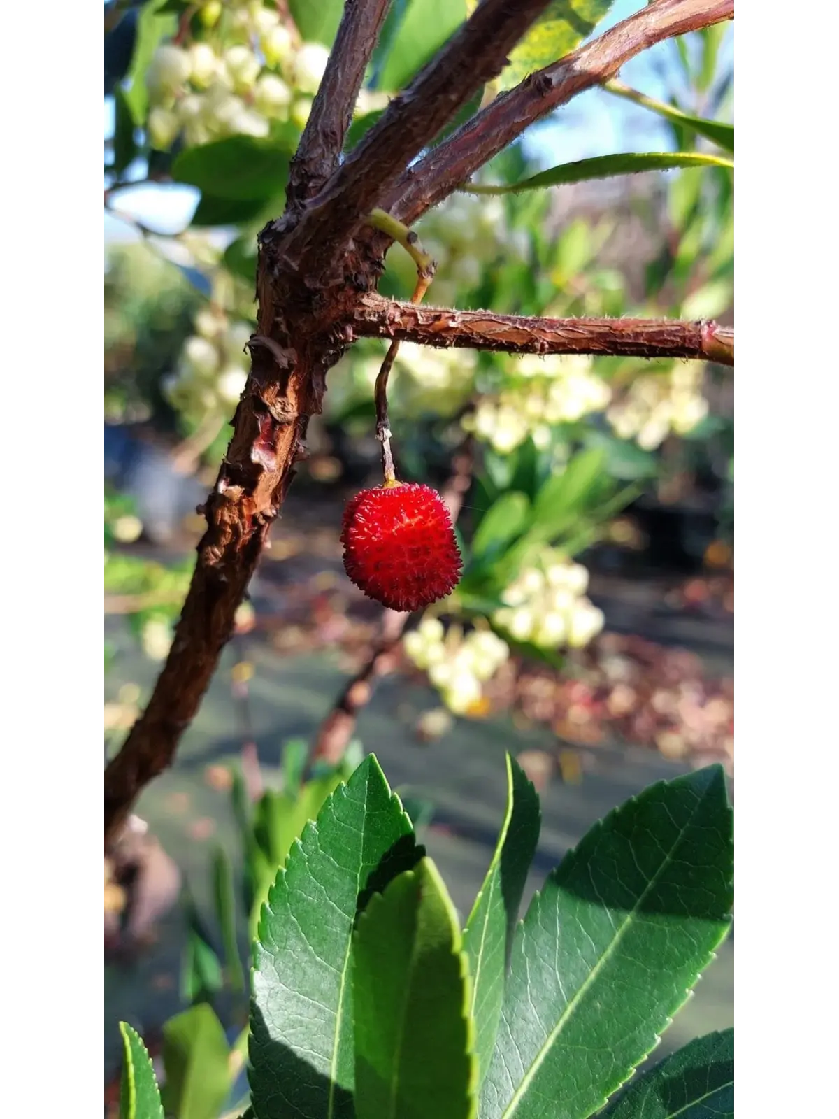 Was ist das Besondere am mehrstämmigen Erdbeerbaum?Das Besondere am mehrstämmigen Erdbeerbaum ist seine Fähigkeit, gleichzeitig Blüten und Früchte zu tragen. Seine auffälligen, essbaren Früchte und die malerische Wuchsform machen ihn zu einem einzigartigen Blickfang in jedem Garten.