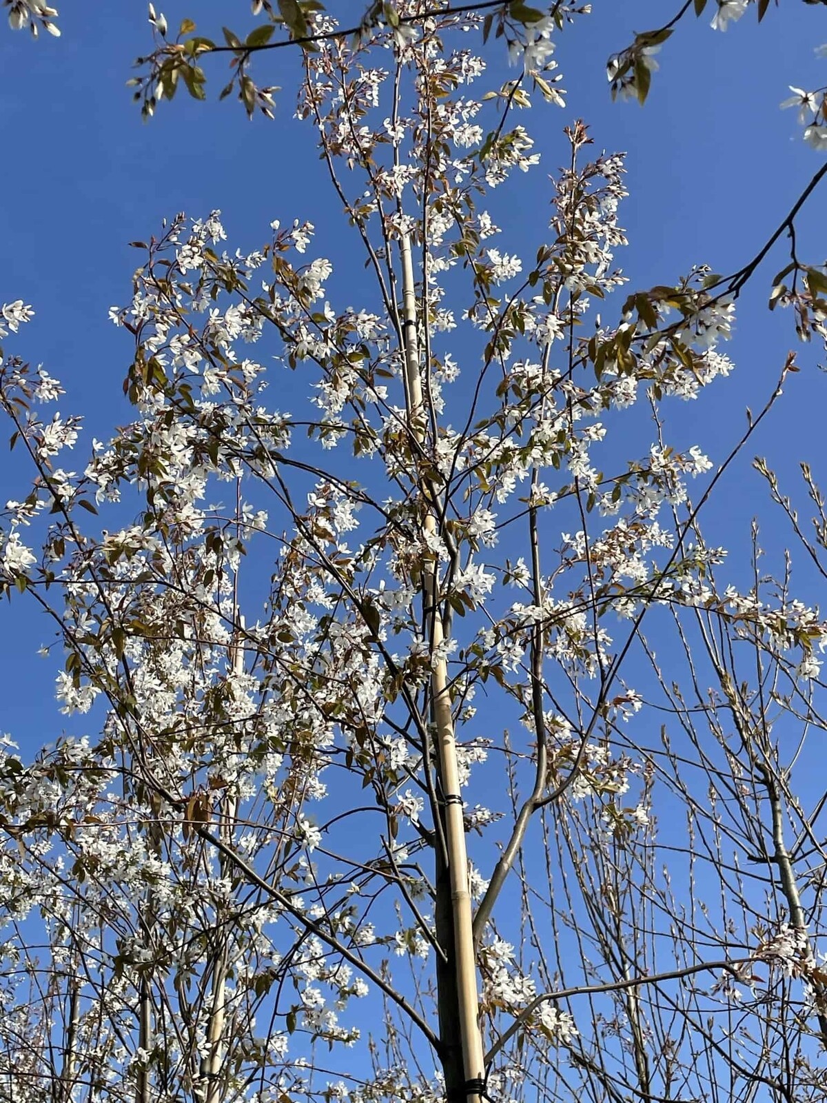 Wie viel Platz braucht ein Schnee Felsenbirne?Die Schnee Felsenbirne erreicht eine Höhe von bis zu 4-6 Metern und eine Breite von 3-4 Metern. Es wird empfohlen, einen Pflanzabstand von mindestens 3 Metern zu anderen Bäumen oder Strukturen einzuhalten, um sicherzustellen, dass der Baum genügend Platz zum Wachsen hat und sich voll entfalten kann.