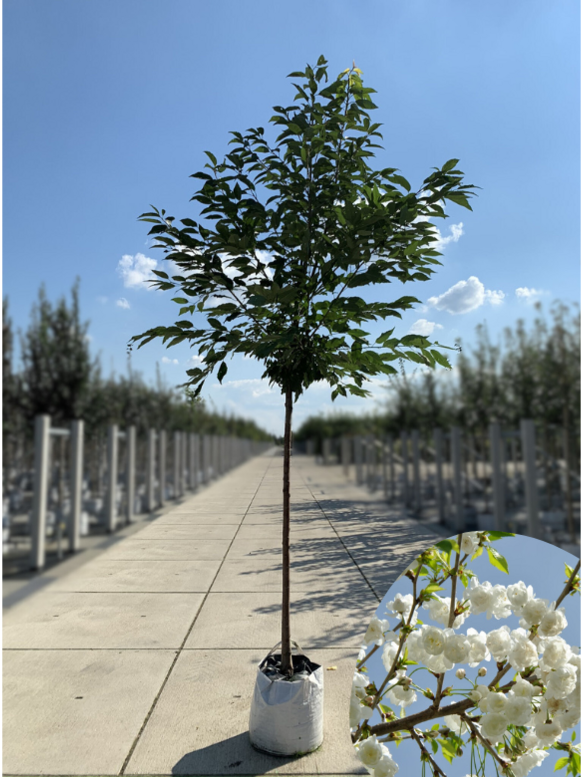 Die Gefülltblühende Vogelkirsche 'Plena', wissenschaftlich als Prunus avium 'Plena' bekannt, ist ein wahrhaft atemberaubender Baum, der jeden Garten in eine malerische Landschaft verwandelt. Dieser besondere Kirschbaum zeichnet sich durch seine üppigen, gefüllten Blüten aus, die im Frühling erscheinen und eine spektakuläre Blütenschau bieten. Nicht nur ihre ästhetische Schönheit, sondern auch ihre robuste Natur macht sie zu einer beliebten Wahl für Gartenliebhaber. Angepasst an eine Vielzahl von Bodenarten und klimatischen Bedingungen, ist die Prunus avium 'Plena' eine pflegeleichte und langlebige Ergänzung für jeden Garten. Der Kauf dieser Vogelkirsche bedeutet die Investition in Jahre voller natürlicher Schönheit und entspannender Anblicke, die jede Jahreszeit überdauern.
