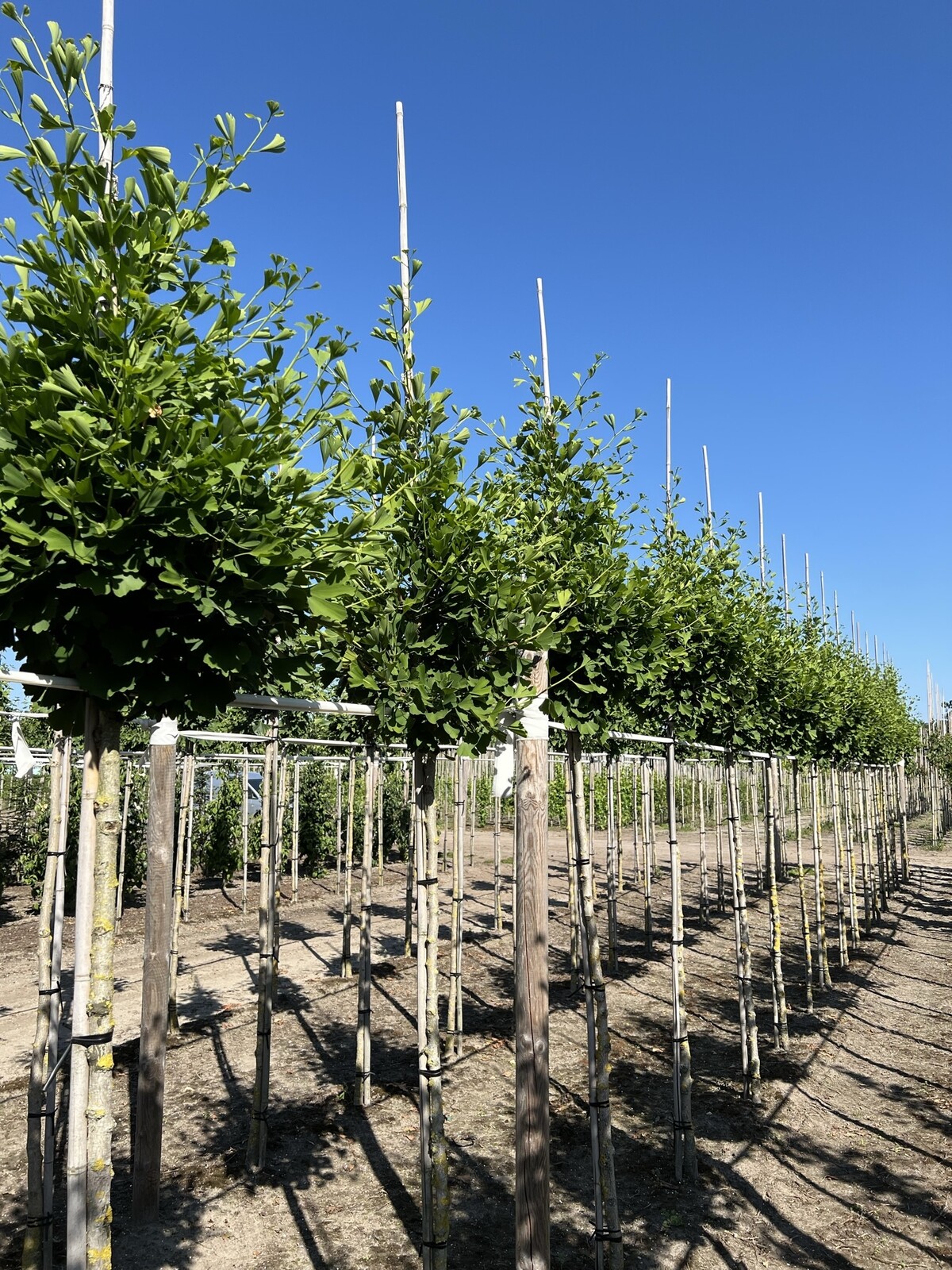 Der Säulen-Fächerblattbaum wächst schmal und säulenförmig, sodass er relativ wenig Platz benötigt. Halten Sie mindestens 1,5 Meter Abstand zu anderen Bäumen oder Wänden ein.