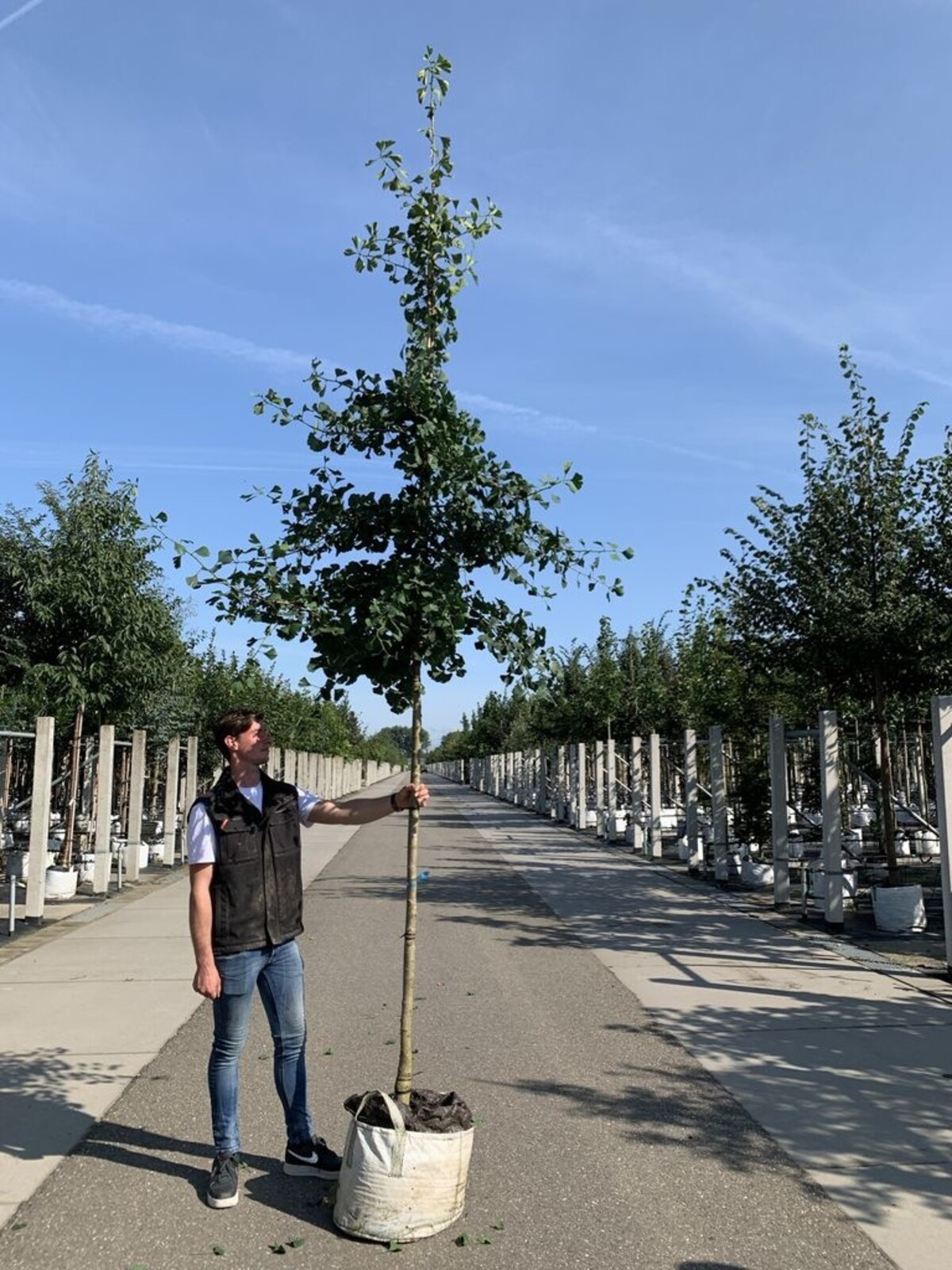 Der Ginkgo biloba, einer der ältesten Baumarten der Welt, hat seinen Ursprung in China und ist bekannt für seine lange kulturelle und medizinische Geschichte. Diese Baumart, die vor mehr als 200 Millionen Jahren entstanden ist, wird oft als lebendes Fossil bezeichnet. Sie hat viele geologische Epochen überlebt und wird in vielen asiatischen Kulturen als Symbol für Langlebigkeit und Widerstandsfähigkeit verehrt. Der 'Princeton Sentry' ist eine spezielle Züchtung des Ginkgo biloba, die für ihre säulenartige Wuchsform und ihre Anpassungsfähigkeit an verschiedene Umgebungen bekannt ist. Diese Sorte wurde speziell für ihre städtische Tauglichkeit und ihre schmale Wuchsform gezüchtet, was sie zu einer beliebten Wahl in modernen Landschaftsgestaltungen macht.