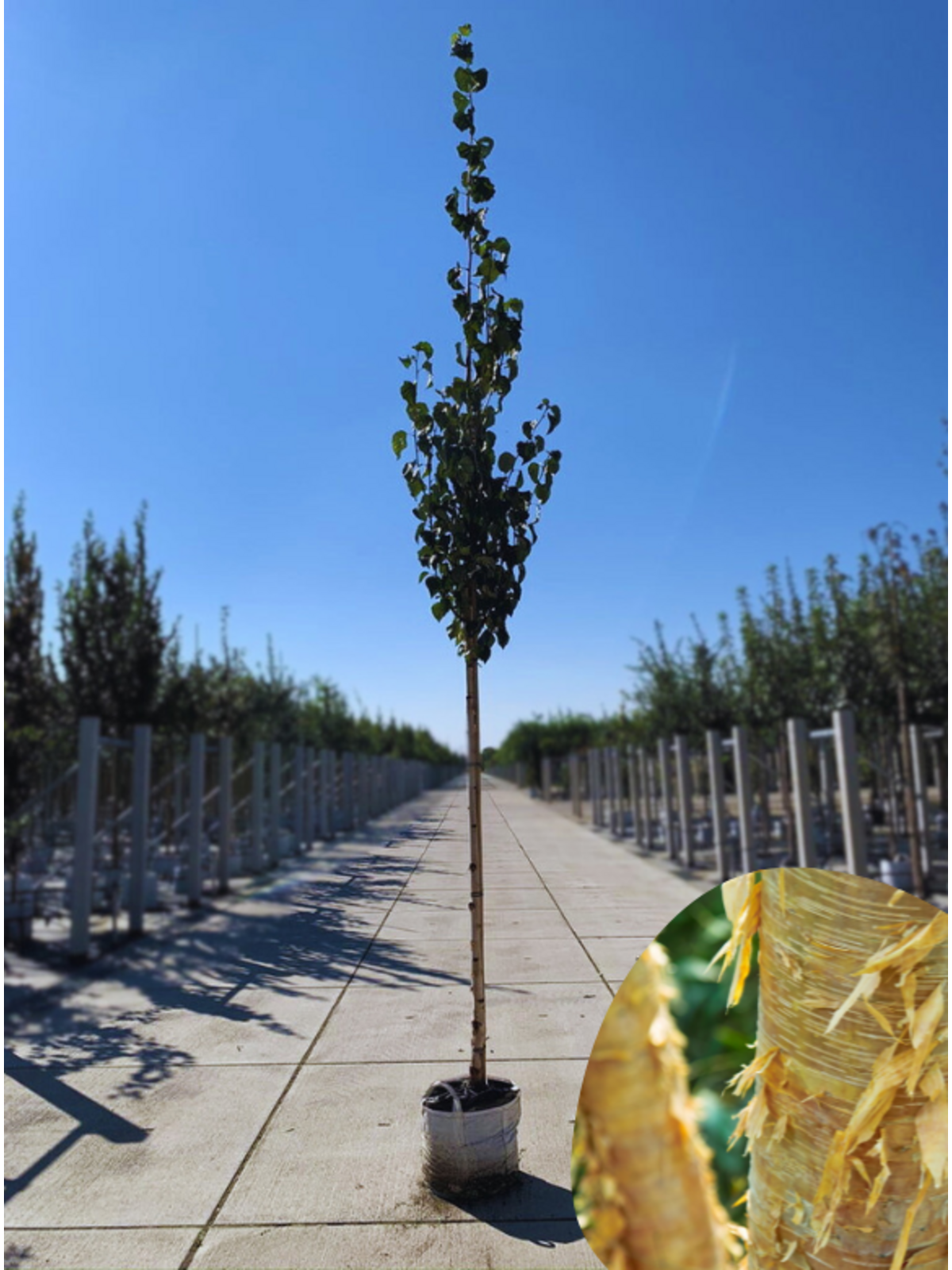 Unsere Betula ermanii Bäume werden so gezüchtet, dass sie alle eine Stammhöhe zwischen 180 und 200 cm haben. Dies sorgt für eine gleichmäßige Größe und Form, die sich ideal für die Gestaltung von Gärten und Landschaften eignet.