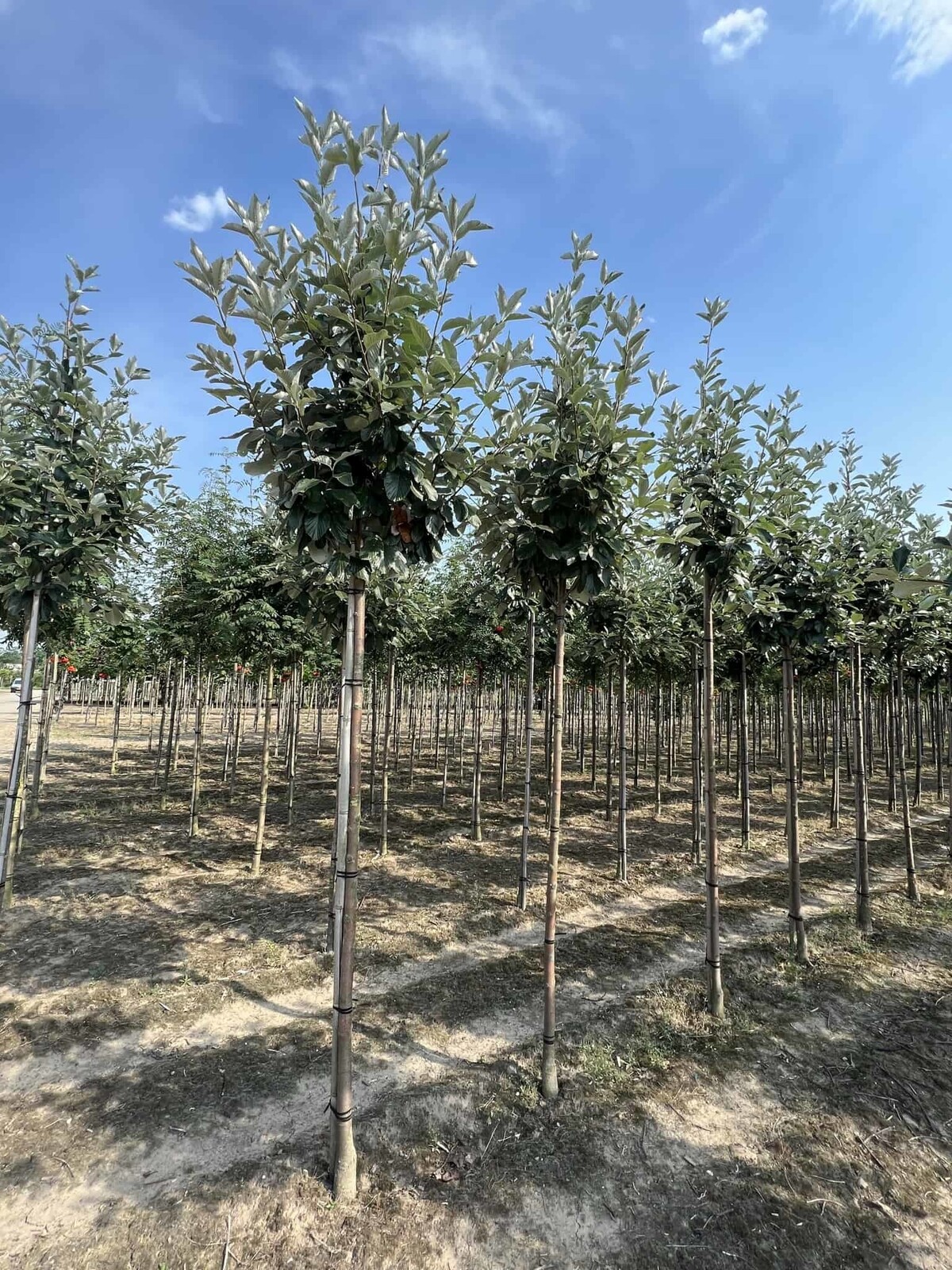 Auf 160 Hektar Anbaufläche kultivieren wir jährlich 175.000 Bäume im Freiland sowie 50.000 Bäume im Topf in rund 750 verschiedenen Sorten. Dank unserer Topfbäume ist eine ganzjährige Lieferung möglich, auch in den Sommermonaten.
