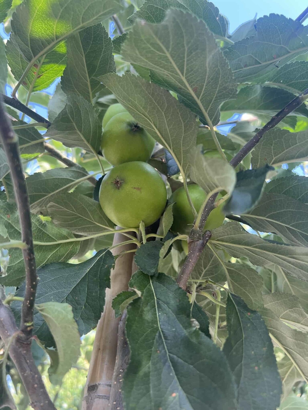 Im Sommer beginnen die Früchte zu reifen, und der Baum bietet einen angenehmen Schatten. Die Äpfel entwickeln ihre charakteristische rote Farbe und süße Aromen.