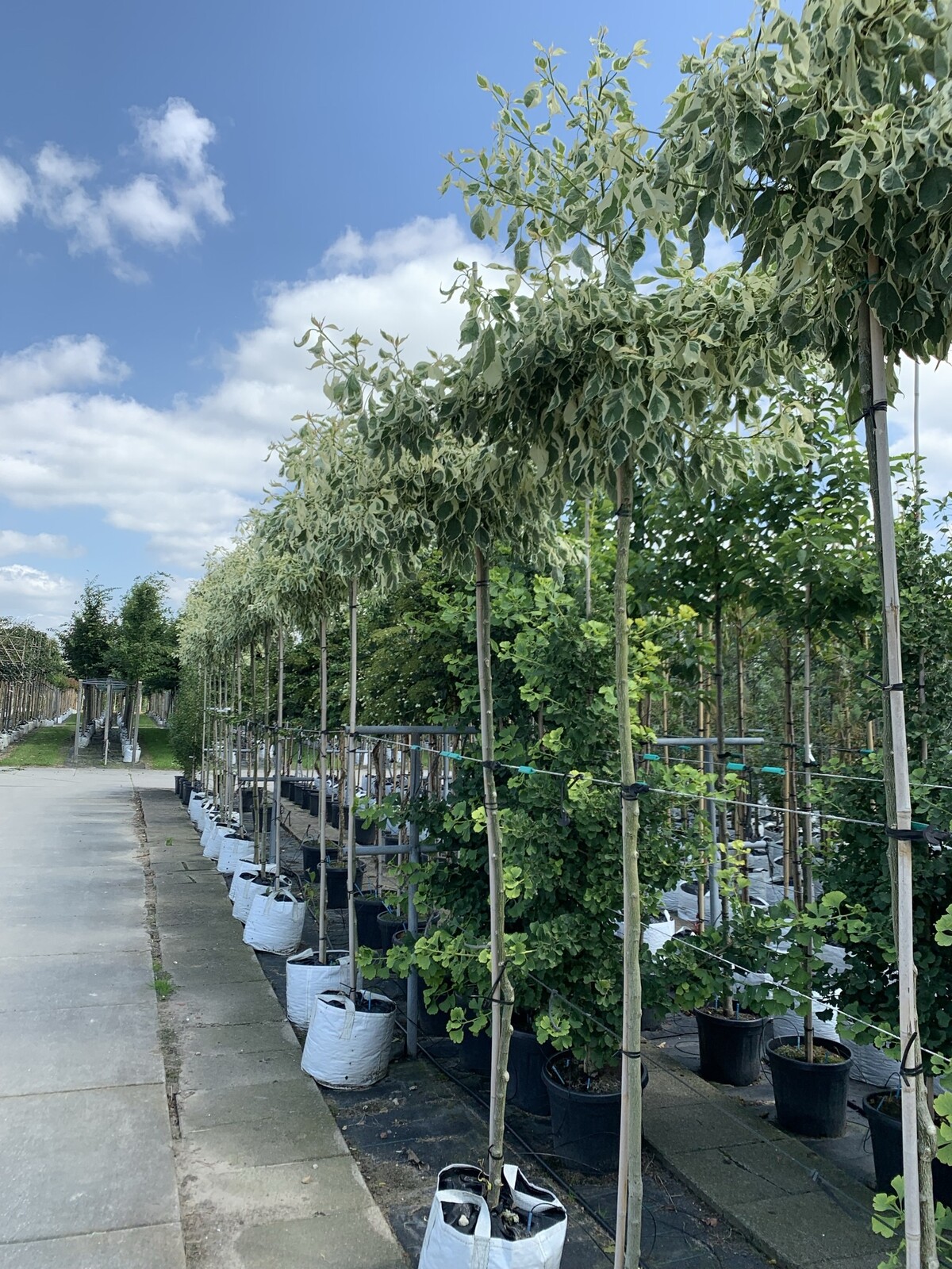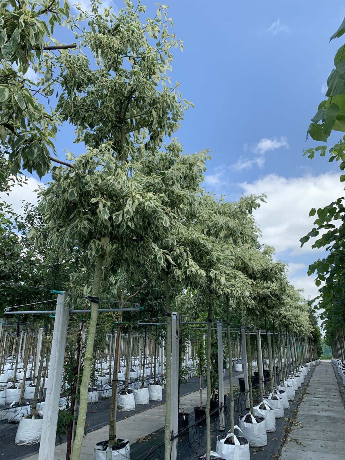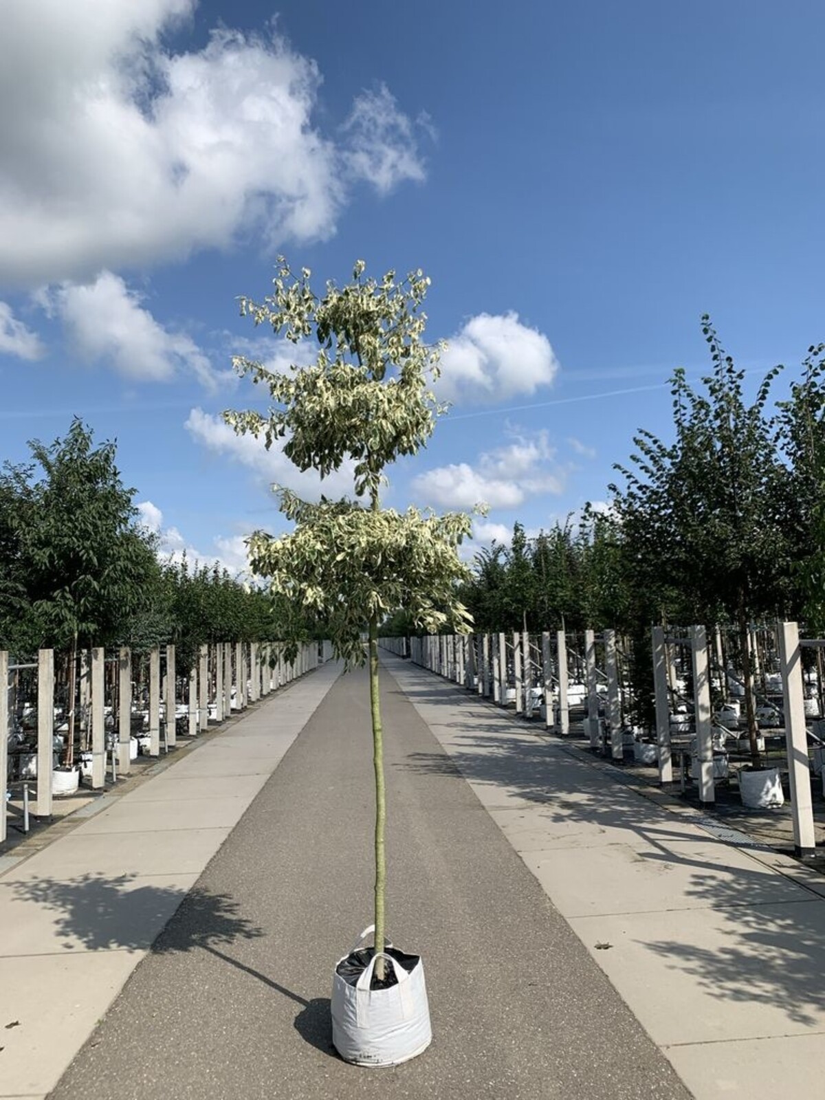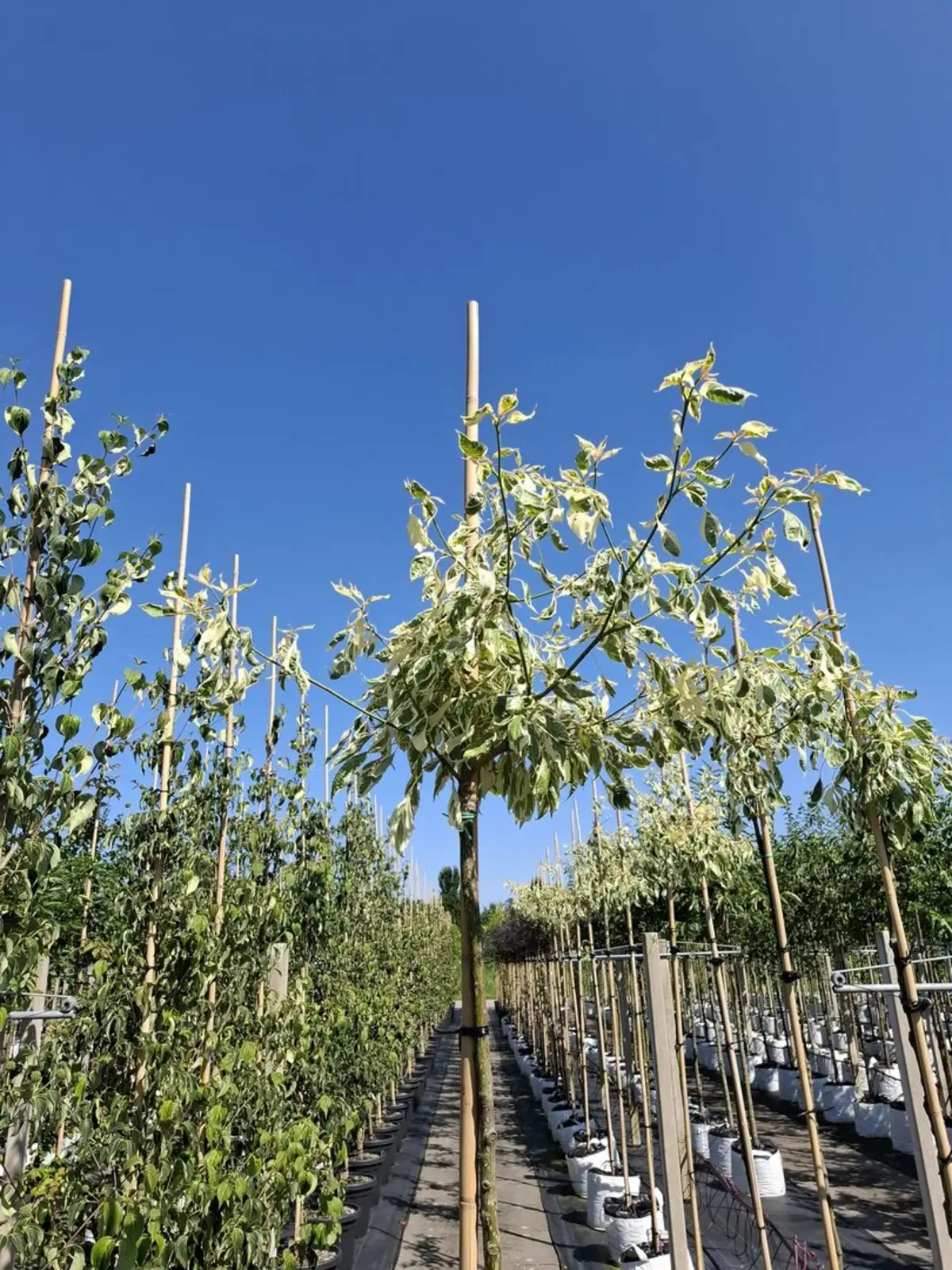 Wie groß wird der Weißbunte Pagoden-Hartriegel?Der Cornus controversa Variegata erreicht eine Höhe von bis zu 6 Metern und eine Breite von etwa 4 Metern.