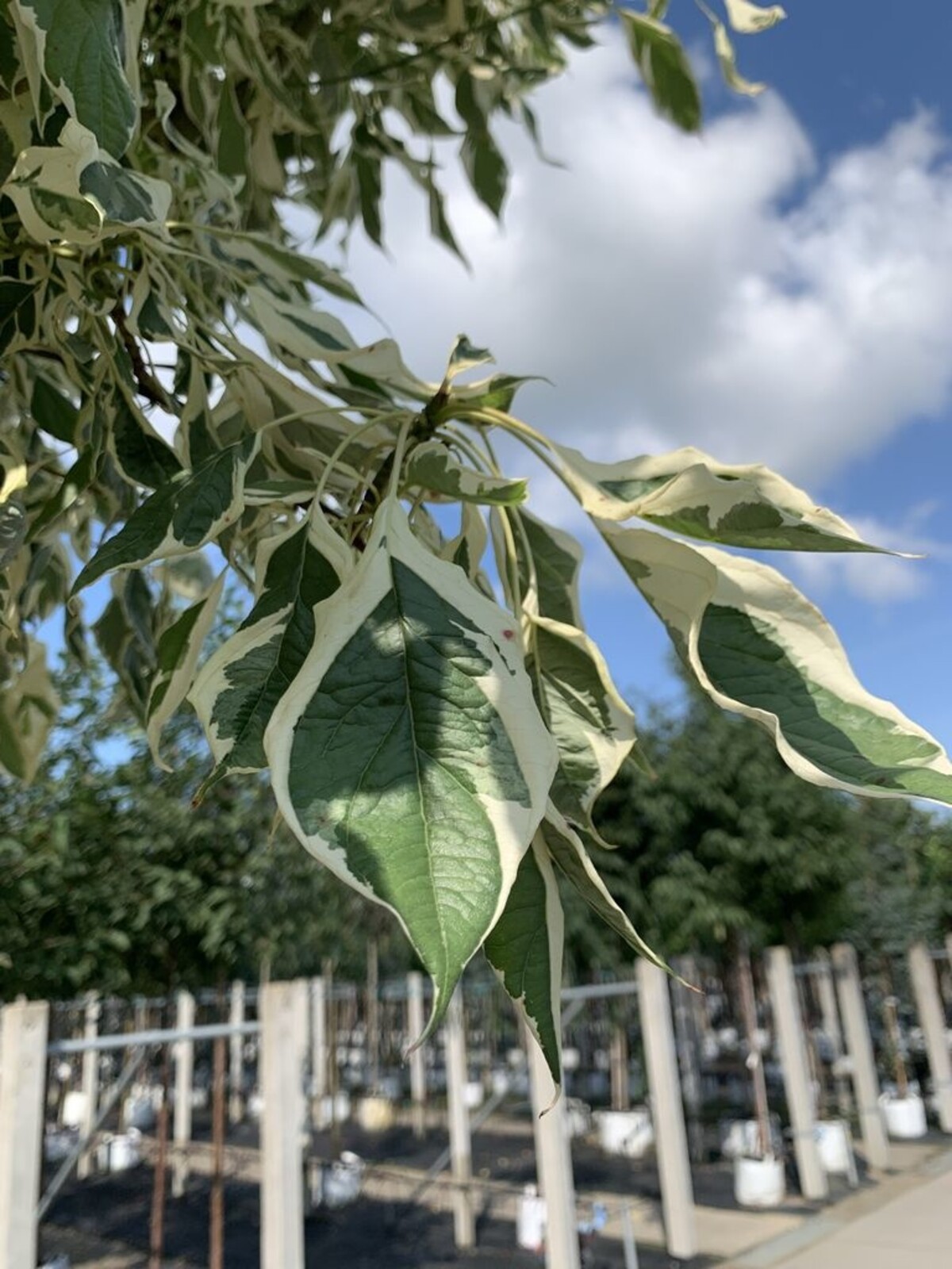 Dieser Hartriegel zeichnet sich durch seine cremeweißen Blattränder und die schöne horizontale Verzweigung aus. Im Frühling bezaubert er mit kleinen, cremeweißen Blüten, die in attraktiven Schirmrispen angeordnet sind.
