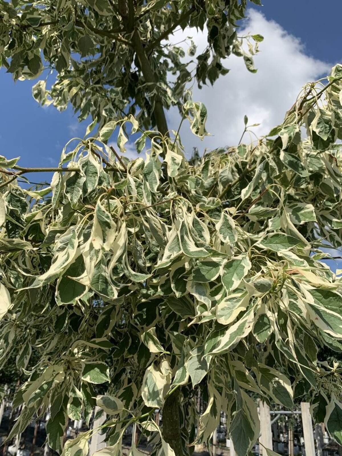 Der Weißbunte Pagoden-Hartriegel, botanisch bekannt als Cornus controversa Variegata, ist ein außergewöhnlicher Zierbaum für jeden Garten. Mit seinem einzigartigen, etagenförmigen Wuchs und den auffällig panaschierten Blättern ist er ein echter Blickfang.