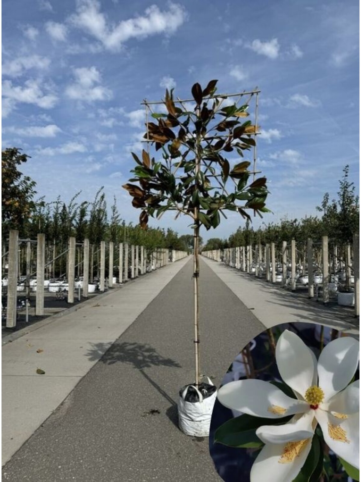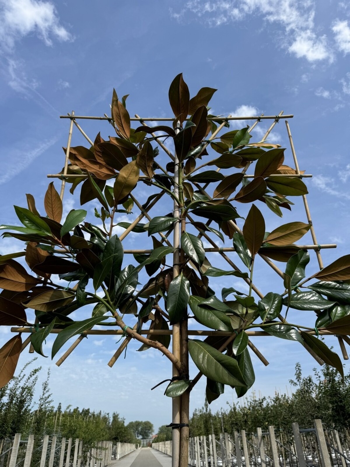 Kann eine Magnolie als Spalierbaum verwendet werden?Ja. Wir fertigen unser Immergrüne Magnolie Spalier aus Magnolia grandiflora.