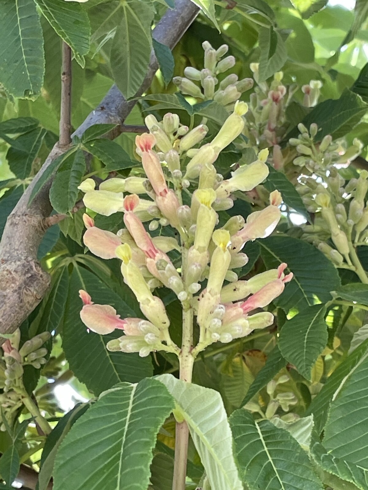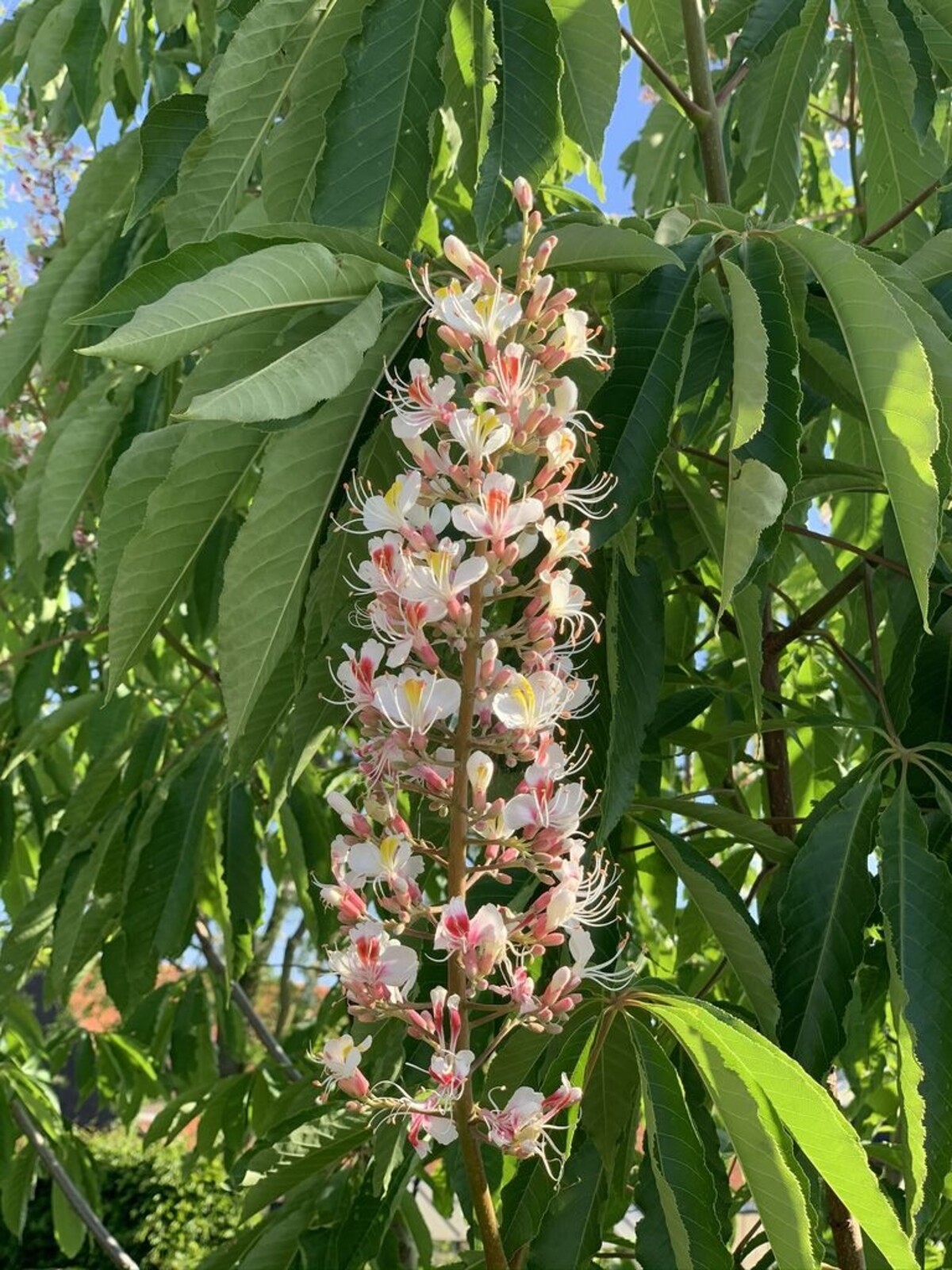 Die Blüten der Aesculus indica sind auffällig und schön, in der Regel weiß und erscheinen im späten Frühling in großen, aufrechten Trauben.