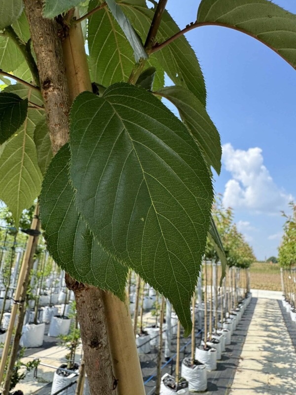 Während der Sommermonate bietet die Japanische Nelkenkirsche 'Kanzan' mit ihrem dichten, grünen Blätterdach angenehmen Schatten.