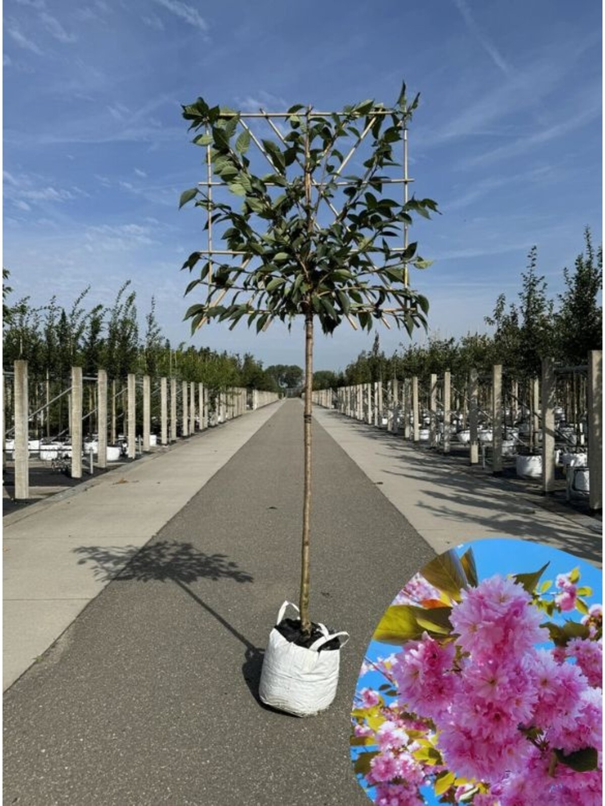Diese Zierkirsche ist bekannt für ihre spektakuläre Blüte im Frühjahr. Der Baum bildet reichlich gefüllte Blüten in einer wunderschönen tiefrosa Farbe, was ihn zu einer der beliebtesten Zierkirschen macht.