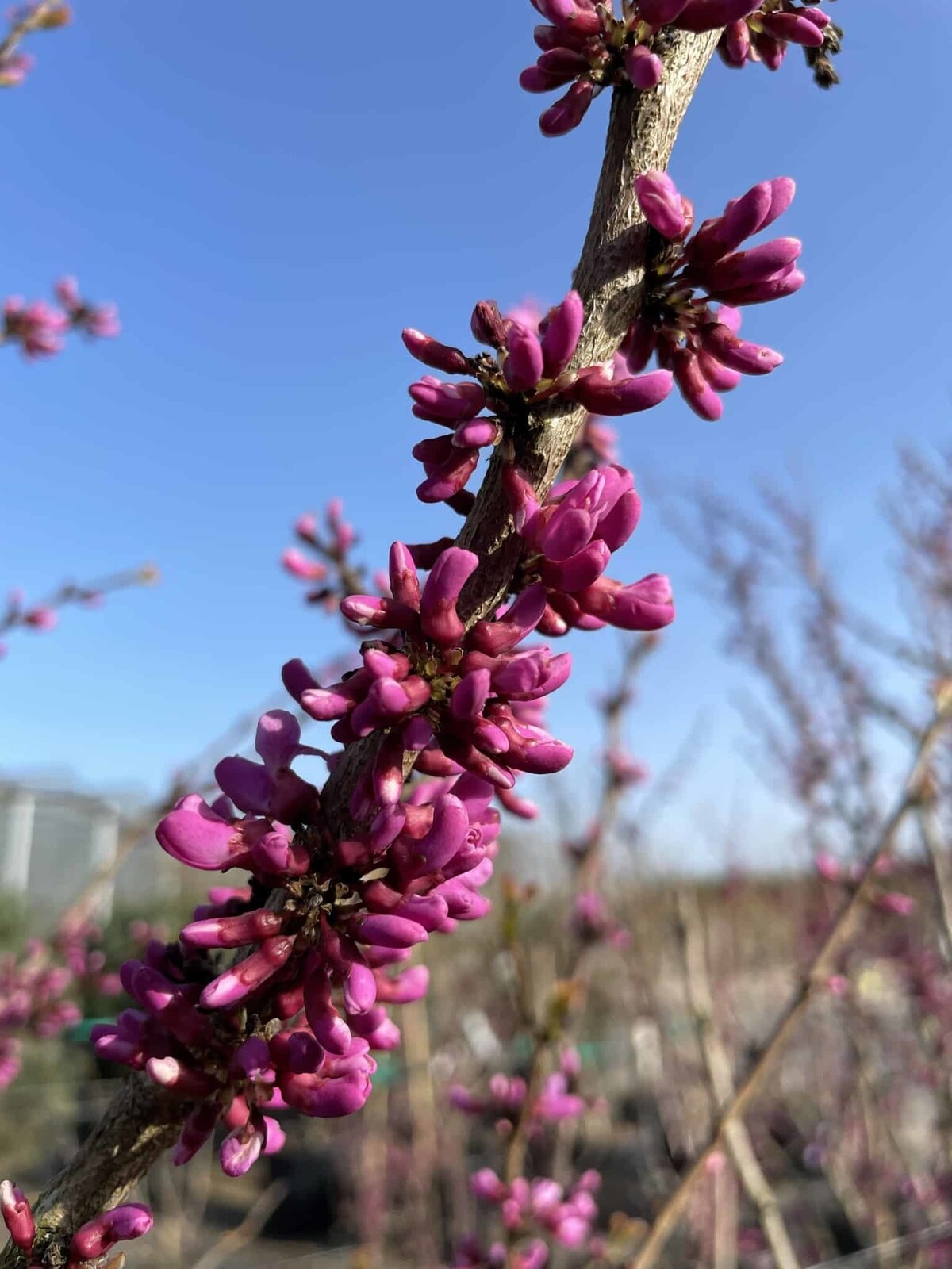 Der Judasbaum 'Avondale' bleibt kompakt und ist ideal für kleine Gärten. Sorgen Sie für mindestens 2 Meter Durchmesser Platz, um ein optimales Wachstum zu ermöglichen.