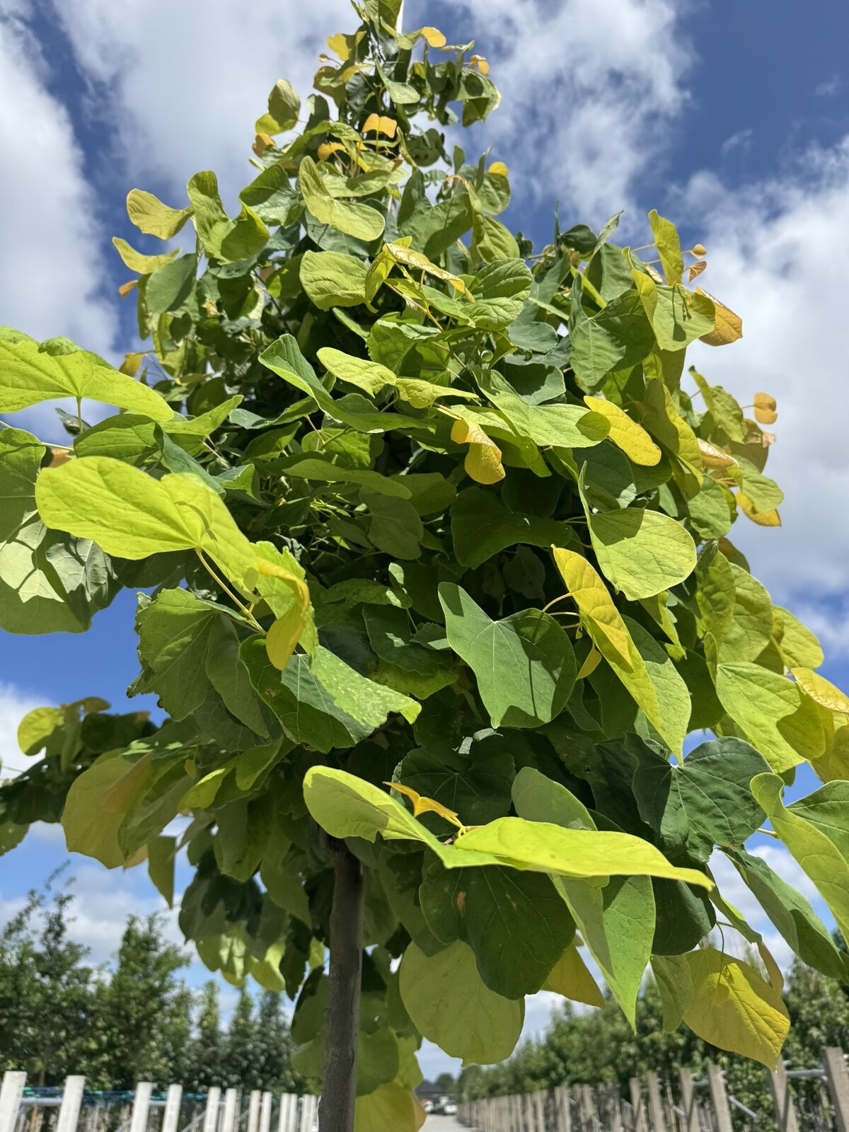 Der Judasbaum 'Rising Sun' ist ein wahres Schmuckstück, das noch selten in den Gärten Europas zu sehen ist. Dieser dekorative und vielseitige kleine Baum oder mehrstämmige Strauch zieht mit seinen herzförmigen Blättern und einer beeindruckenden Farbpalette alle Blicke auf sich.