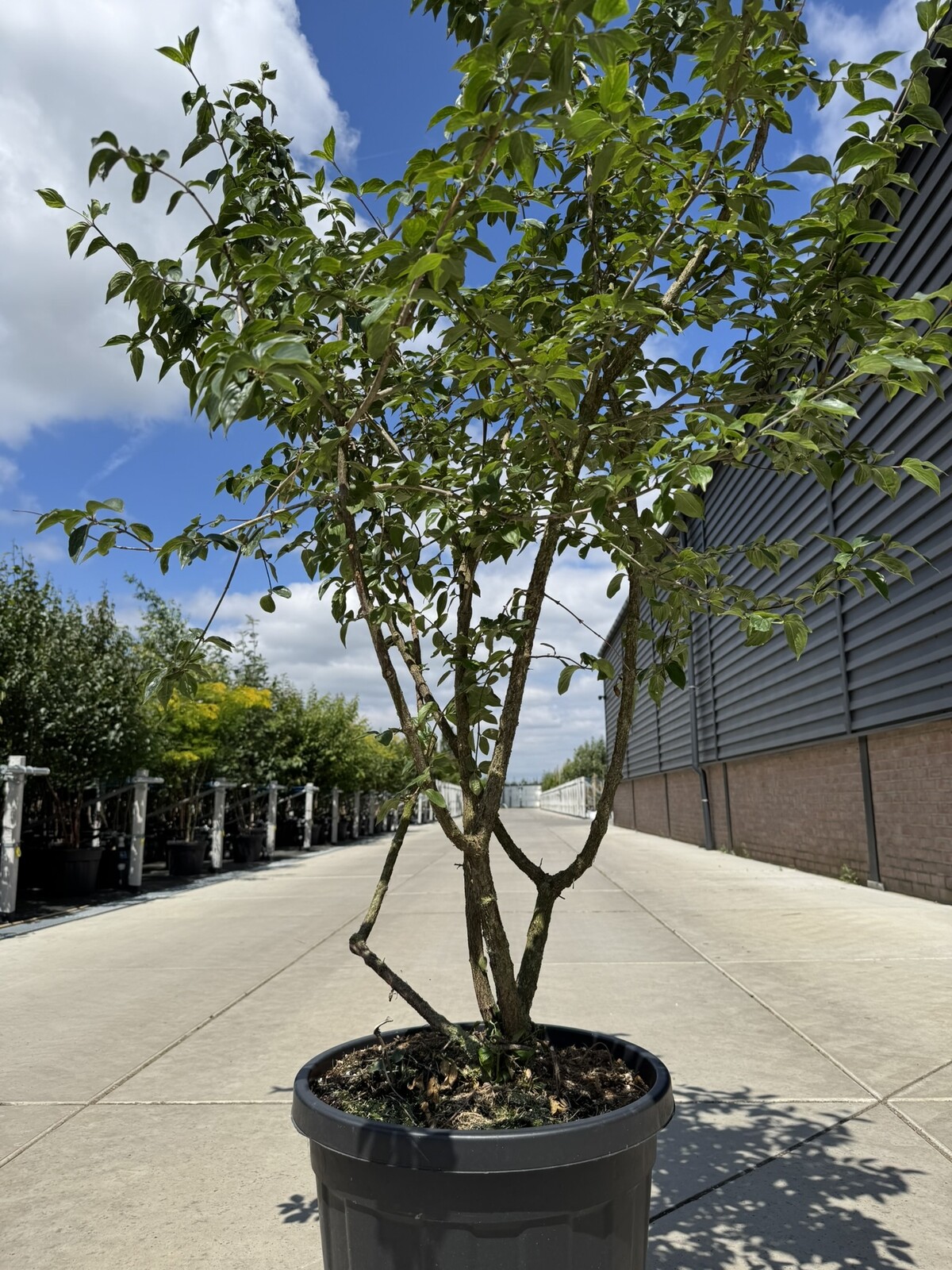 Ohne Laub betont die mehrstämmige Verzweigung die natürliche Architektur; sehr winterhart.