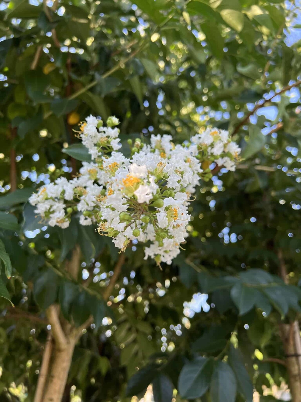 Die Lagerstroemia indica 'Natchez' erreicht gewöhnlich eine Höhe von etwa 3 bis 5 Metern. In einem optimalen Umfeld kann sie sogar bis zu 6 Meter hoch werden, wobei ihr Wachstum von den jeweiligen Standortbedingungen abhängt.