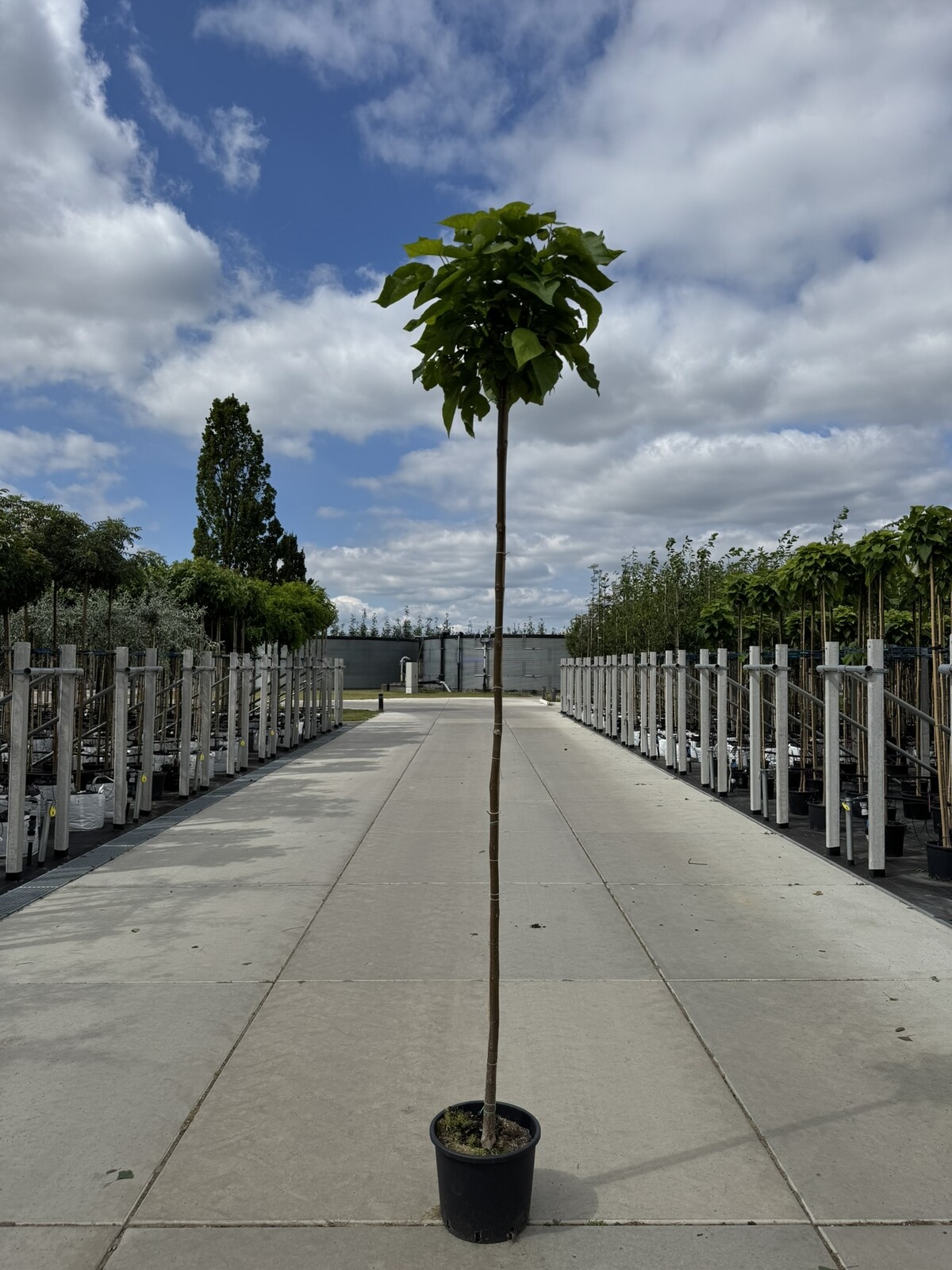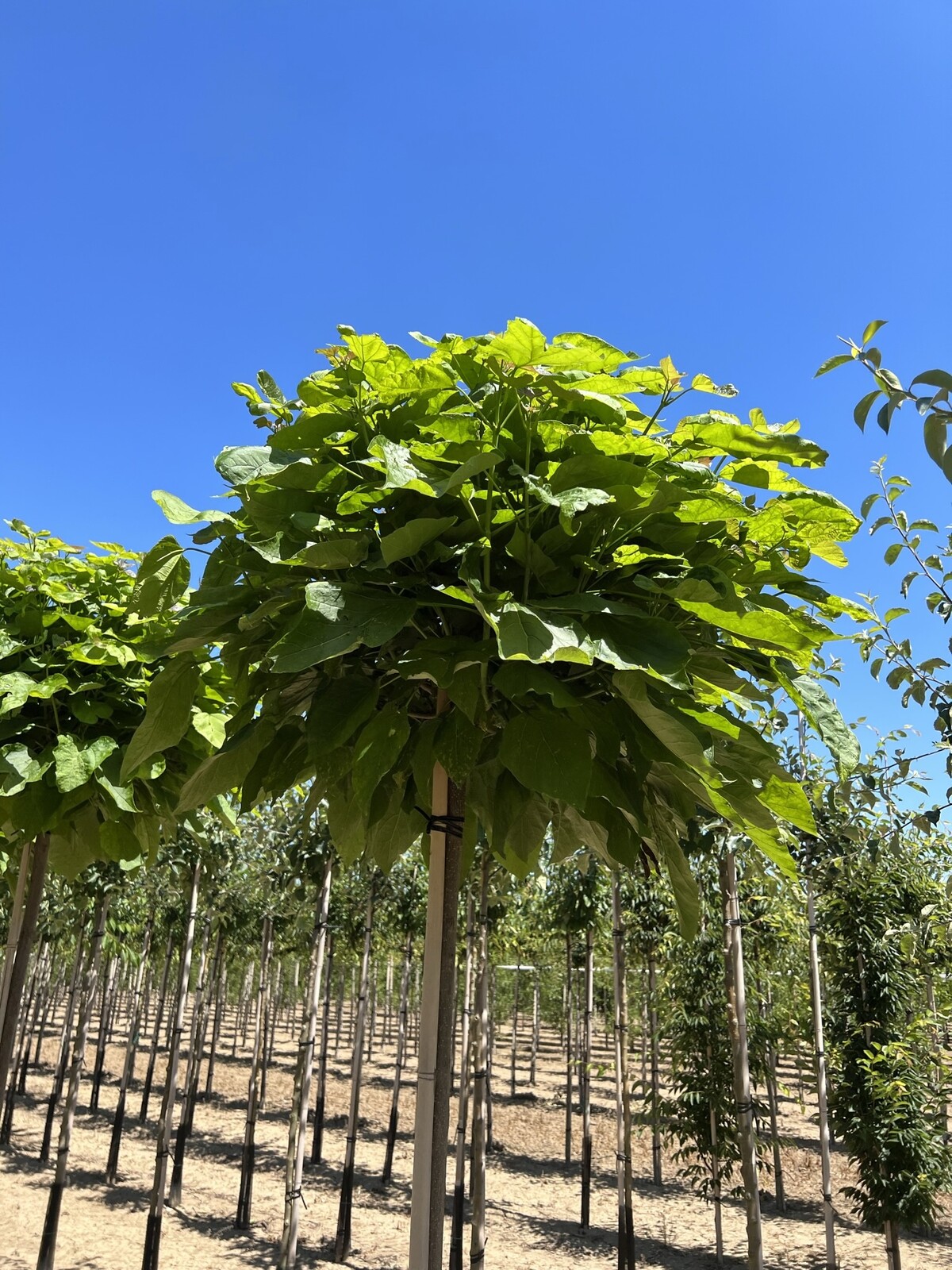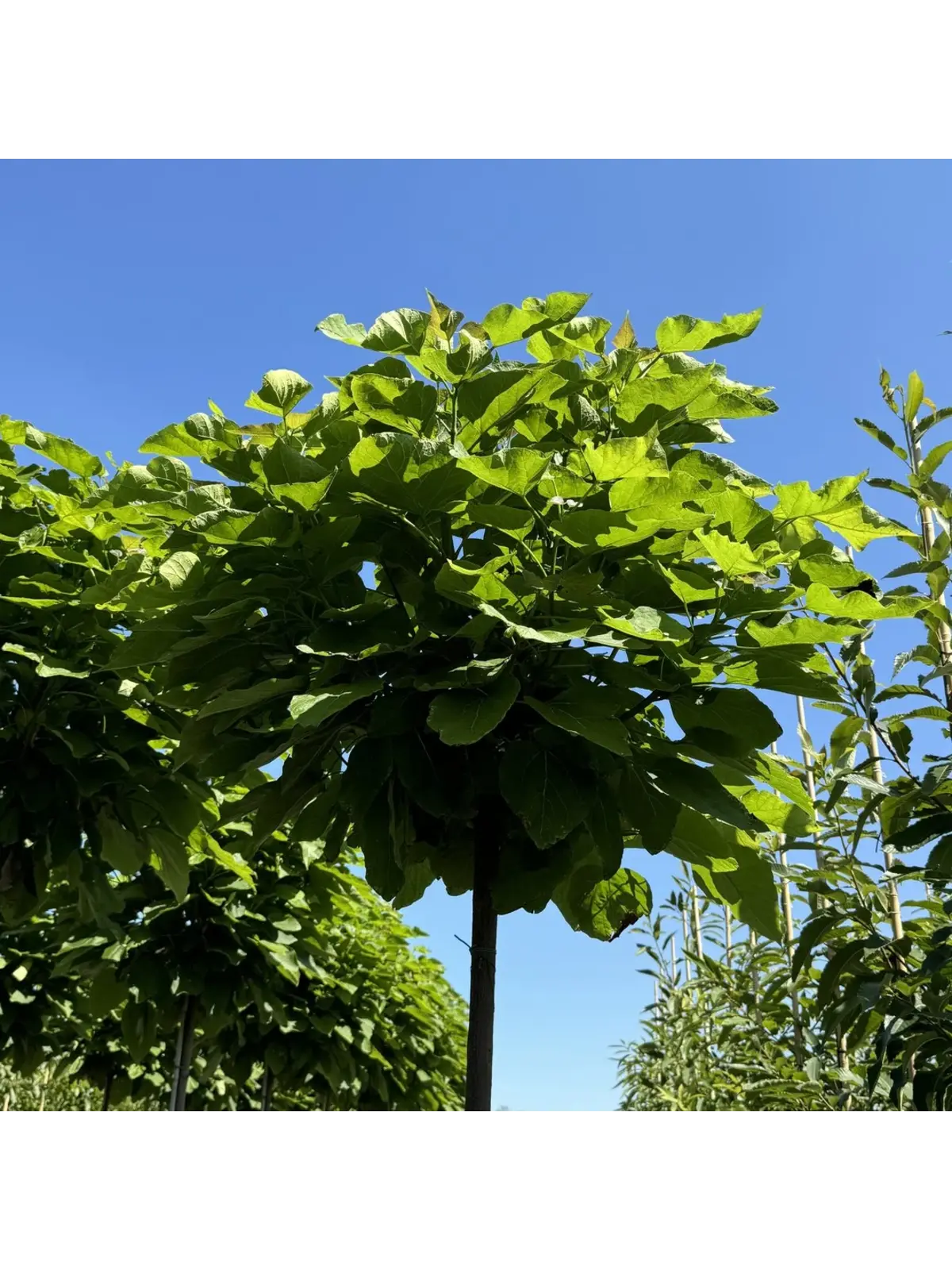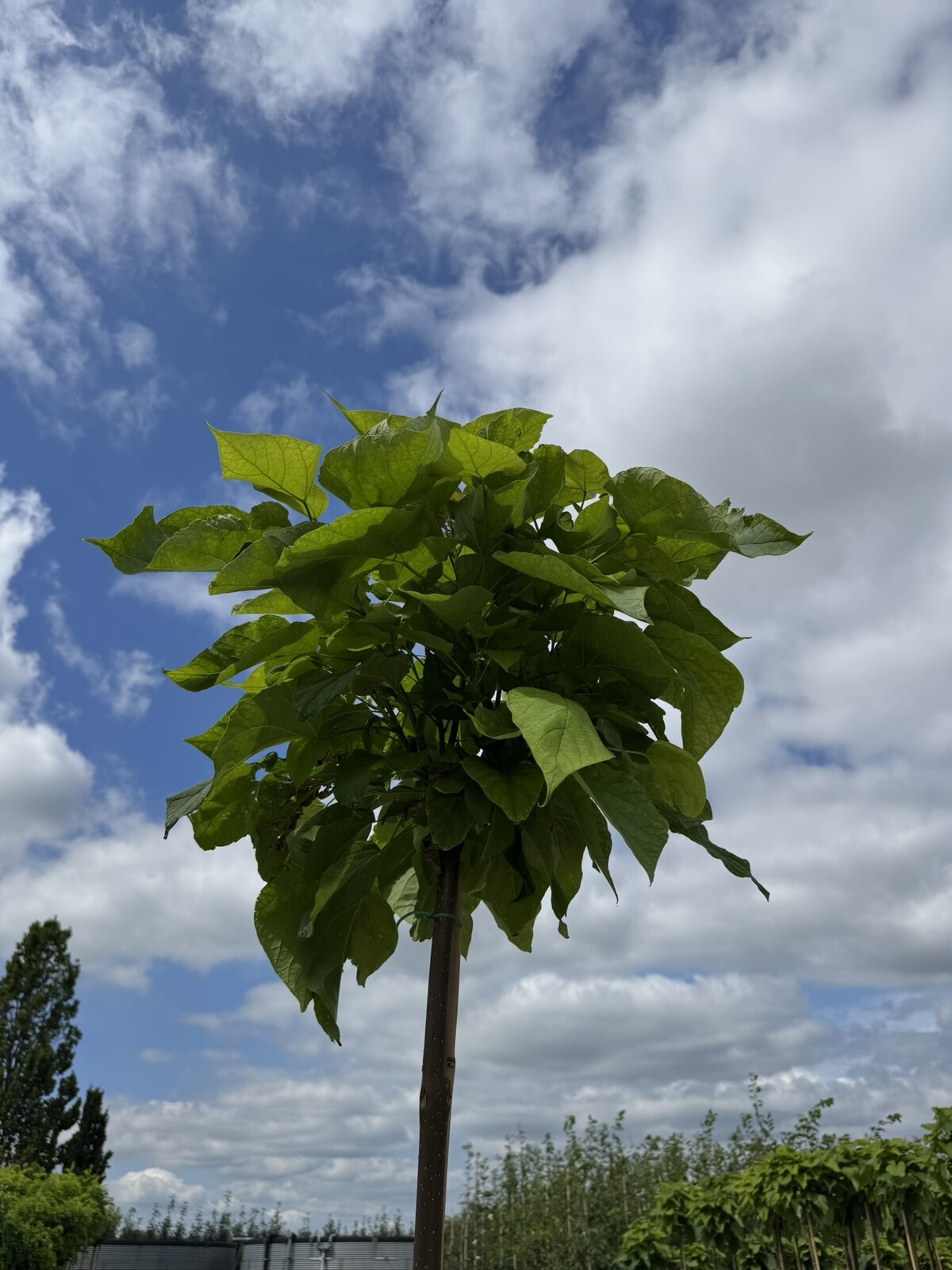Mit seiner dekorativen Kugelkrone und den auffälligen Blättern ist der Kugel-Trompetenbaum eine hervorragende Wahl für jede Gartenlandschaft.