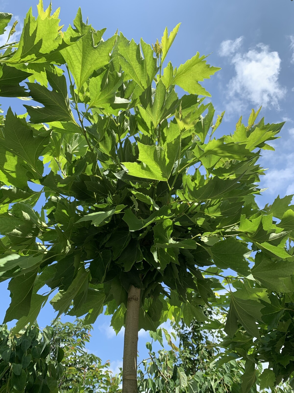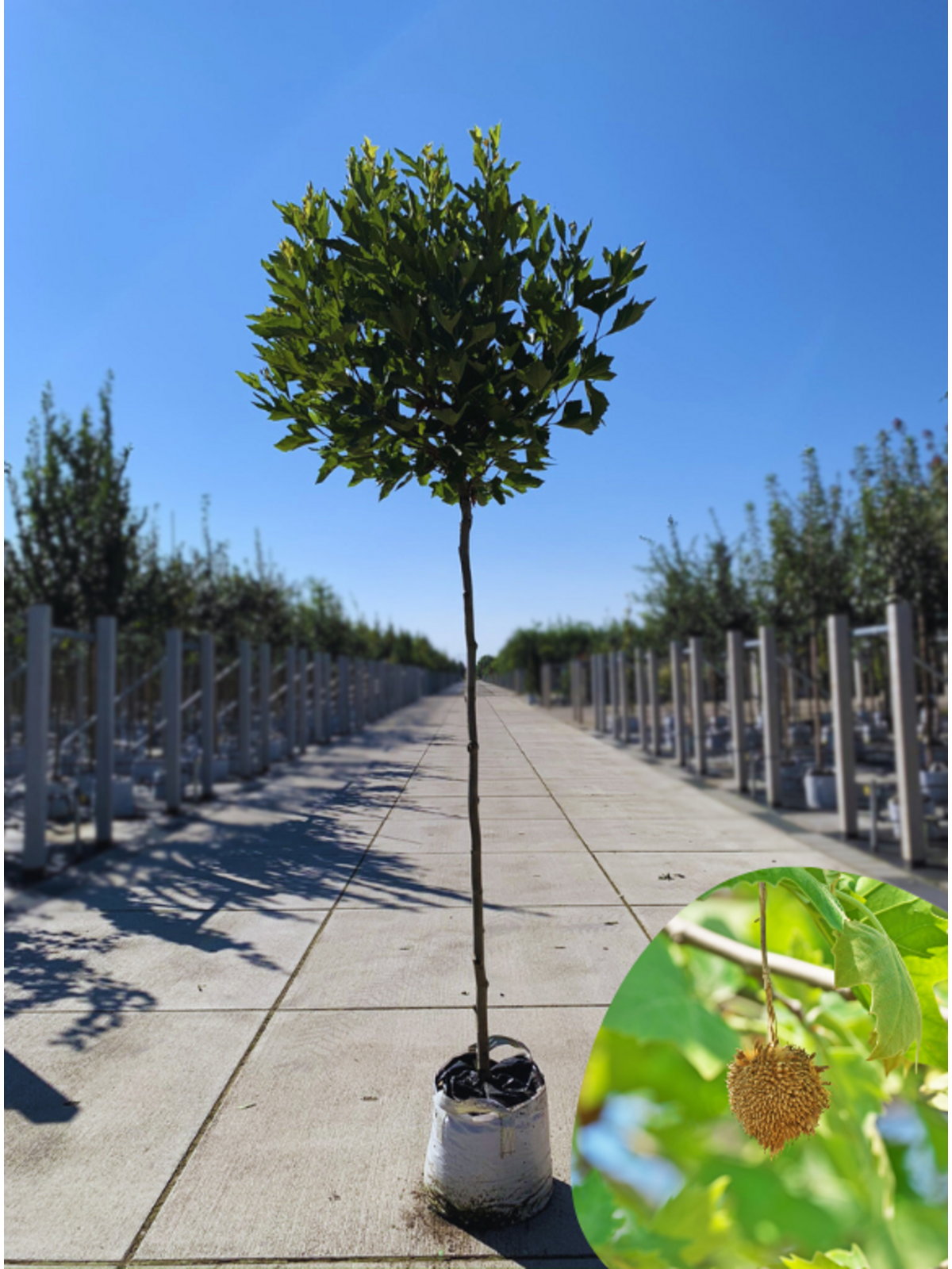 Mit ihrer robusten Natur und gleichmäßigen Kugelform ist die Kugelplatane eine ideale Wahl für formale Gärten oder Stadtplätze.