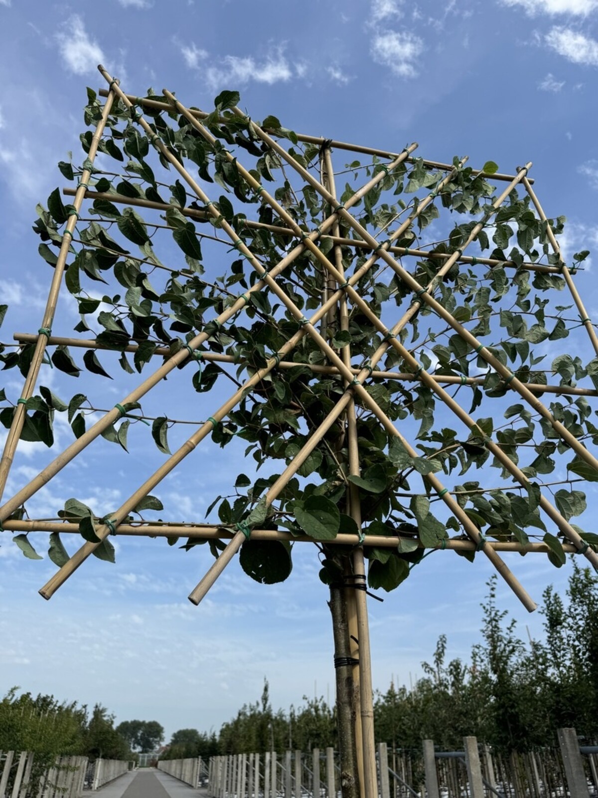 Der Lebkuchenbaum in Spalierform bietet viele Möglichkeiten. Durch seine Herzblätter und die lebhaften Herbstfarben lässt er sich gut mit anderen Zierpflanzen kombinieren, die dezenteres Laub oder Blüten haben. Ob Sie einen einzelnen Baum für etwas Schatten nutzen, mehrere Bäume zur Gliederung des Gartens oder um neugierige Blicke der Nachbarn abzuhalten – der Lebkuchenbaum als Spalier ist die perfekte Wahl.