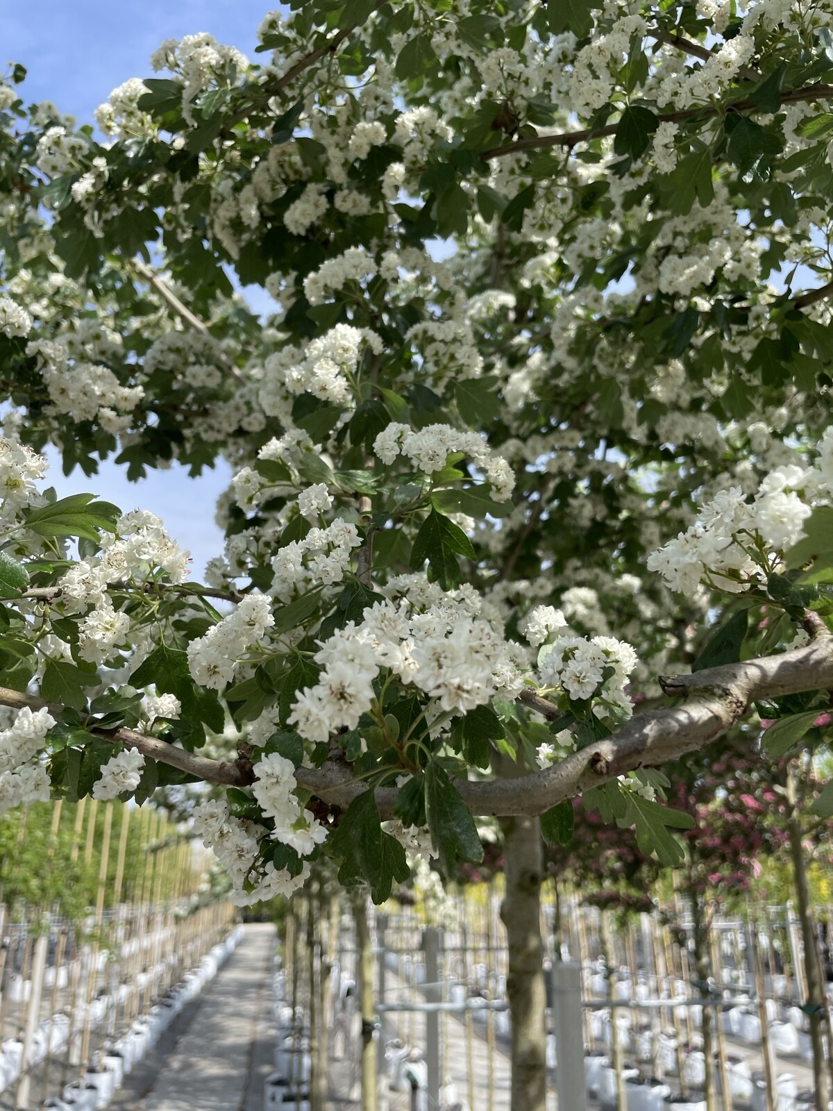 Der Weißdorn 'Albo Plena' ist äußerst pflegeleicht. Ein Rückschnitt ist selten erforderlich, kann aber im Winter oder frühen Frühjahr erfolgen, um die Form zu erhalten.