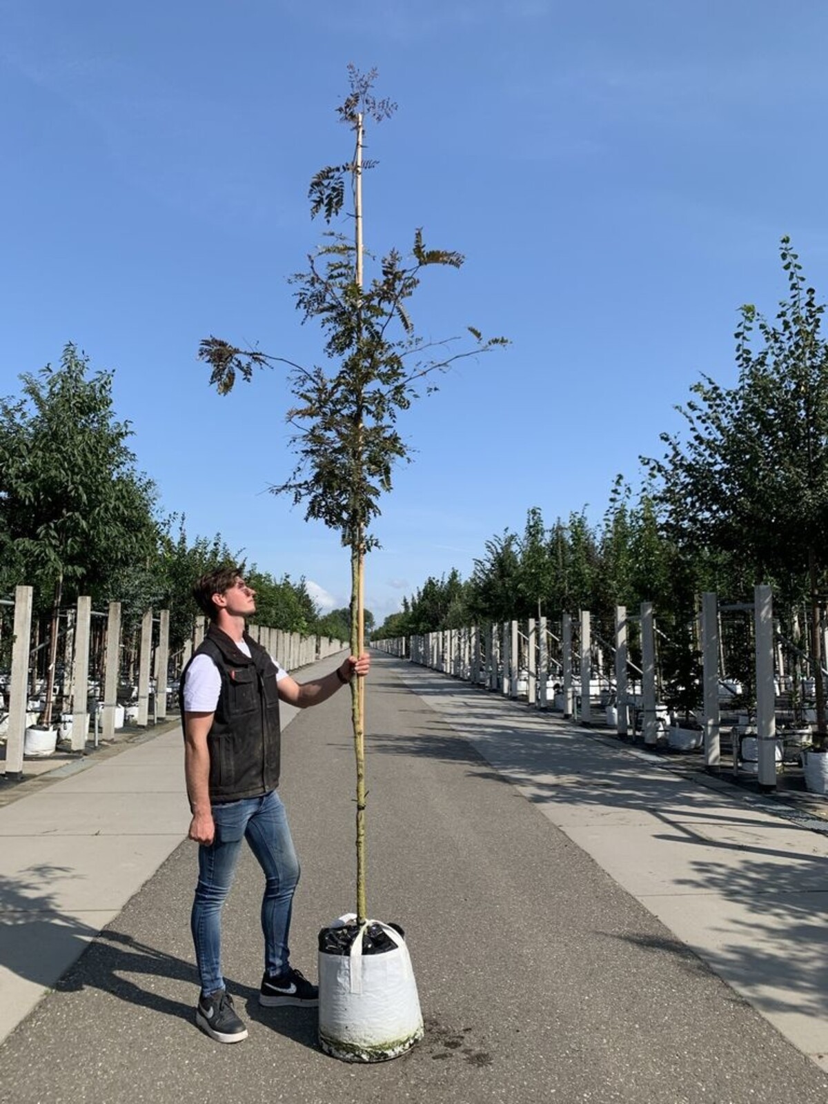 Der Gleditsia triacanthos 'Rubylace' ist ein pflegeleichter Baum, der sowohl in der Sonne als auch im Halbschatten gut gedeiht. Er bevorzugt gut durchlässigen, fruchtbaren Boden, ist aber auch in städtischen Umgebungen anpassungsfähig. Der Baum wächst relativ schnell und sollte im Frühjahr oder Herbst geschnitten werden, um seine Form zu bewahren und eine gesunde Wachstumsstruktur zu fördern. Ein regelmäßiger Schnitt fördert auch eine reichere Laubfärbung. Es ist jedoch wichtig, darauf zu achten, nicht zu viel zu schneiden, da dies das Wachstum beeinträchtigen kann.