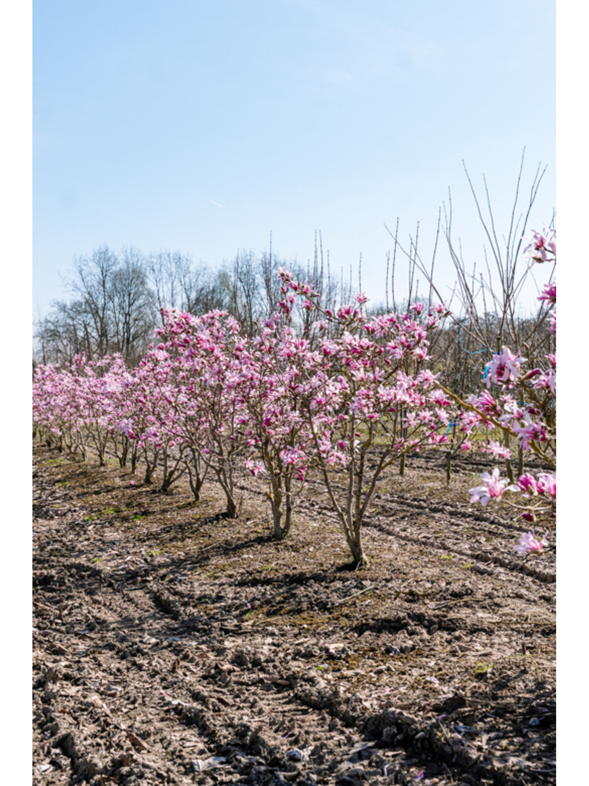 Wie pflegt man eine mehrstämmige Leonard Messel Sternmagnolie?Eine regelmäßige Bewässerung, besonders während trockener Perioden, ist wichtig. Ein jährlicher Rückschnitt nach der Blüte hilft, die Form zu erhalten und die Blütenproduktion zu fördern. Im Frühling sollte mit einem speziellen Magnolien-Dünger gedüngt werden.