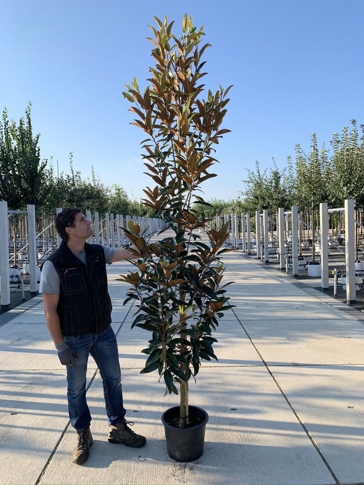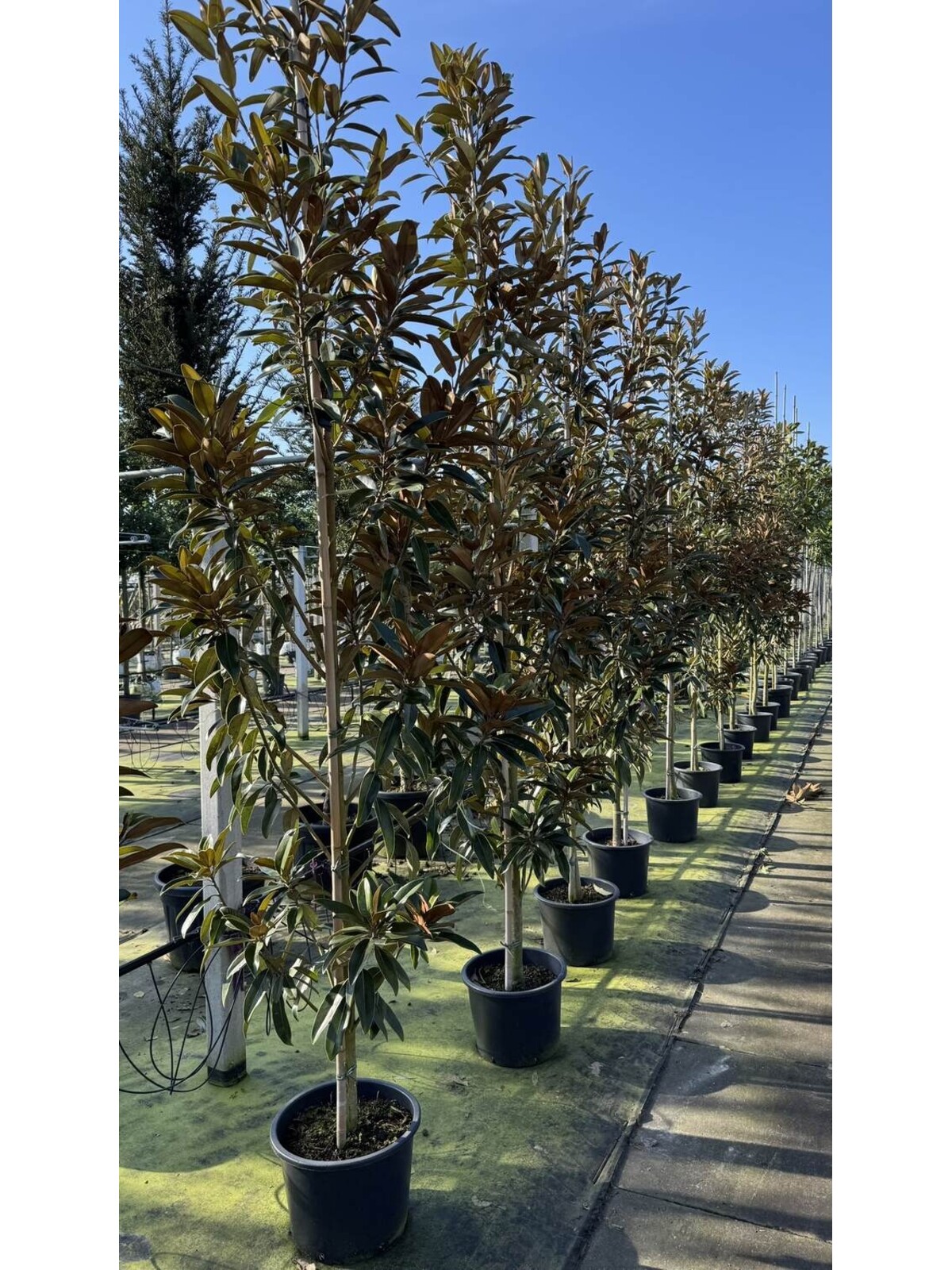Wie pflege ich eine Immergrüne Magnolie Alta?Die Pflege der Magnolia grandiflora Alta erfordert einige grundlegende Schritte. Sie gedeiht am besten in voller Sonne oder im Halbschatten und bevorzugt einen gut durchlässigen, feuchten, aber nicht übermäßig nassen Boden. Während der Wachstumsperiode benötigt sie regelmäßiges Gießen, aber vermeiden Sie Staunässe. Ein jährlicher Schnitt, vorzugsweise im Spätsommer oder frühen Herbst, hilft, ihre Form zu erhalten und fördert eine gesunde Blüte. Außerdem profitiert sie von einer jährlichen Düngung im Frühjahr, um ein optimales Wachstum zu unterstützen.