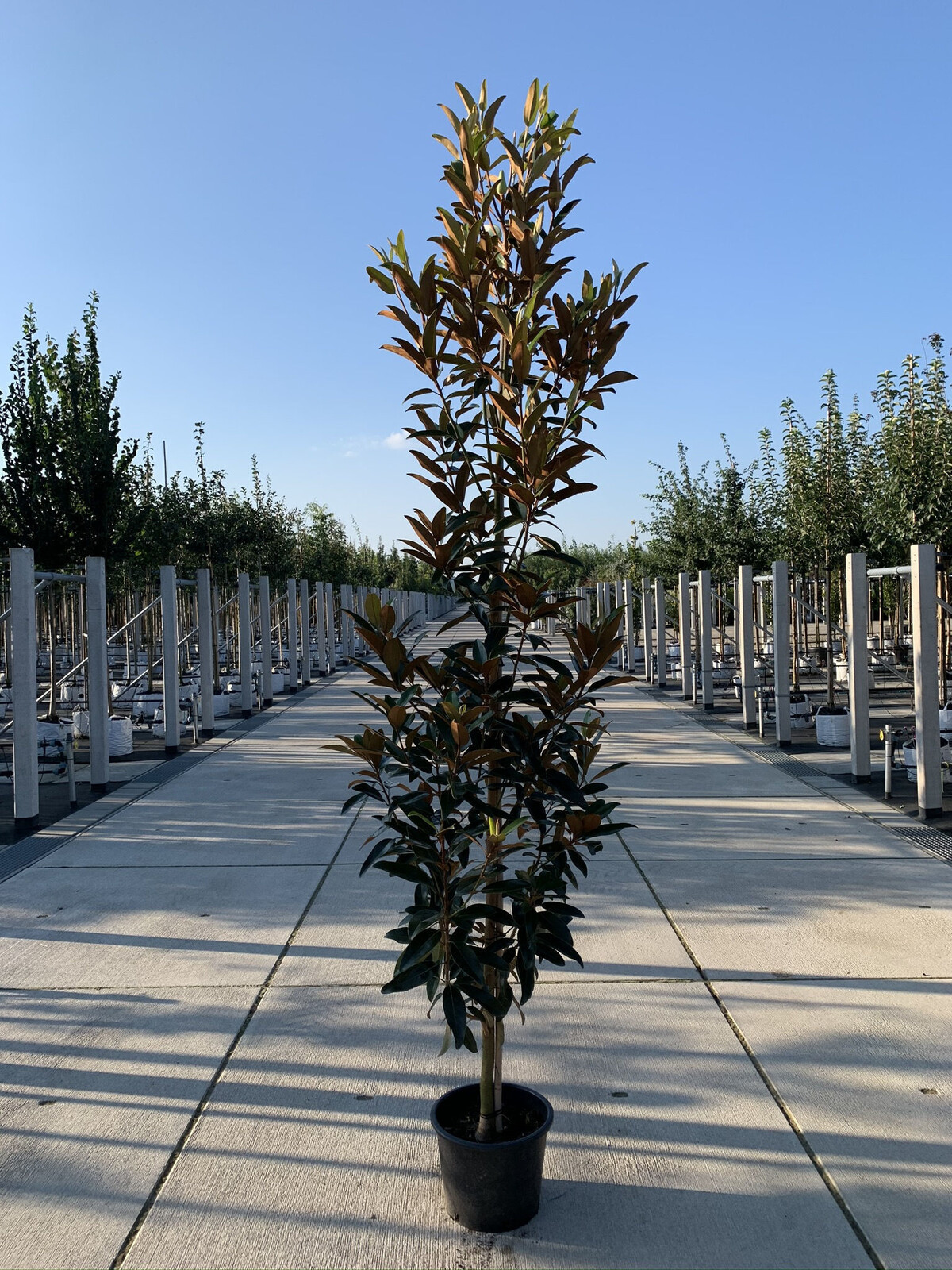 Wie groß wird die immergrüne Magnolie Alta?Die Magnolia grandiflora Alta erreicht normalerweise eine Höhe von etwa 5 bis 8 Metern und eine Breite von 1 bis 3 Metern. Ihr kompakter, säulenförmiger Wuchs macht sie ideal für kleinere Gärten oder städtische Umgebungen, wo Platz ein kostbares Gut ist.