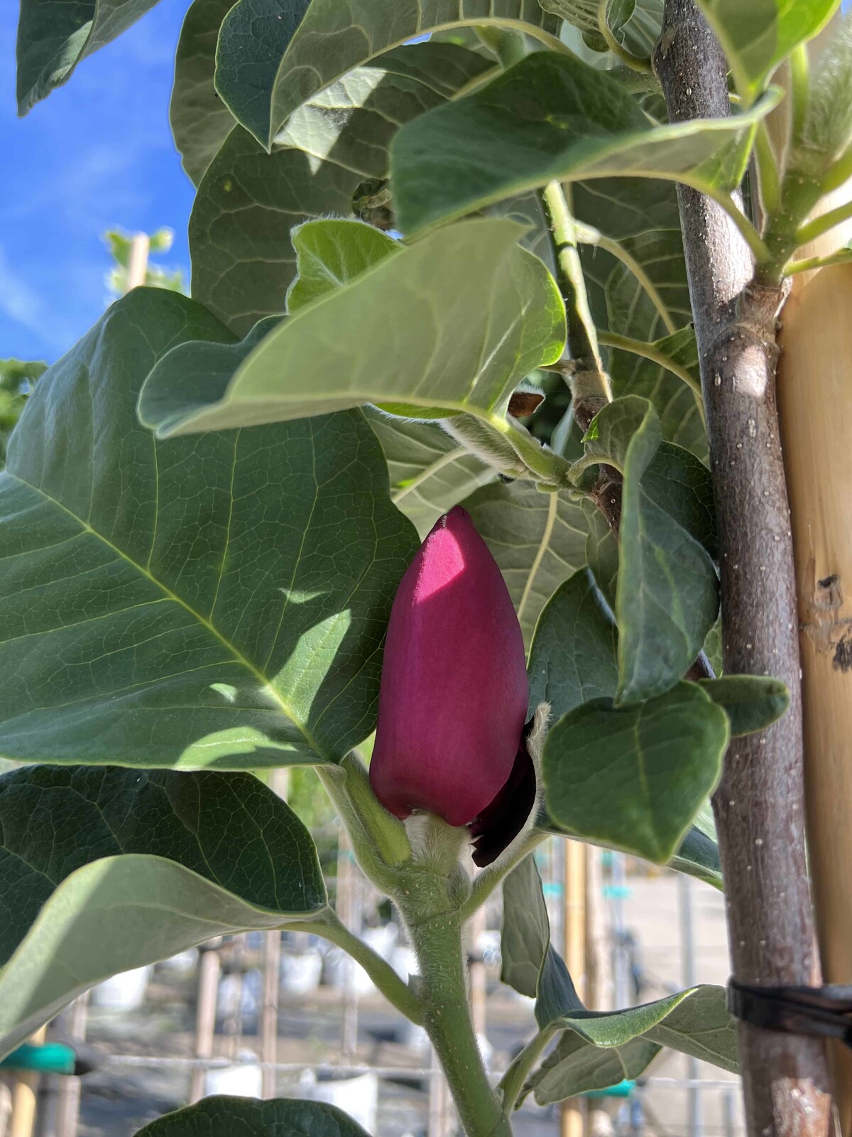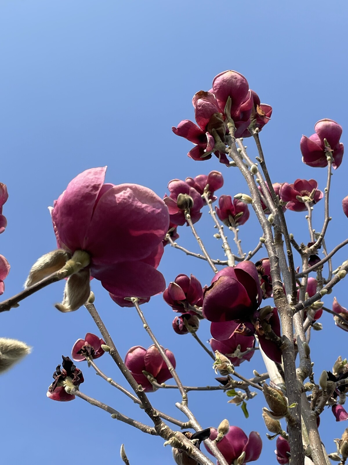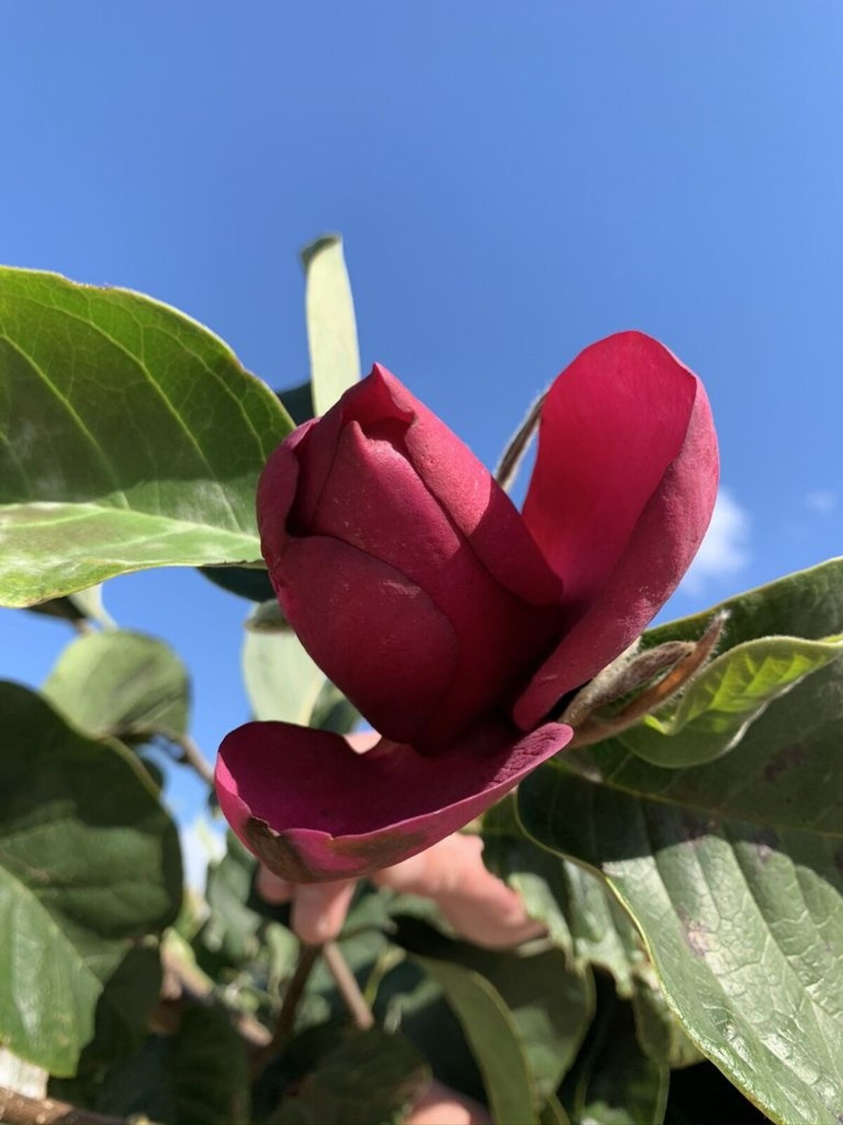 Spektakuläre Blüte der Magnolia 'Black Tulip'